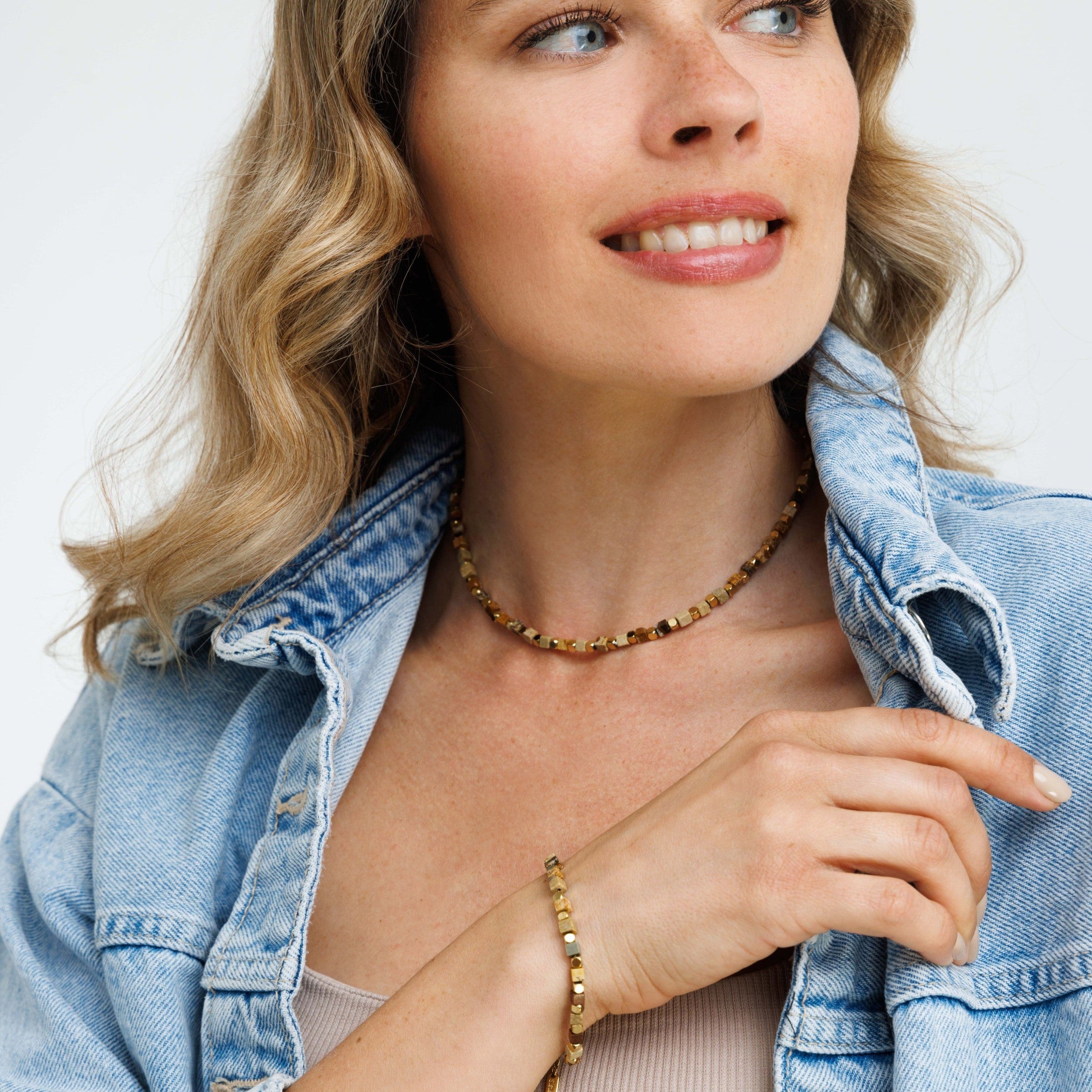 סט שרשרת וצמיד קיוב בראון