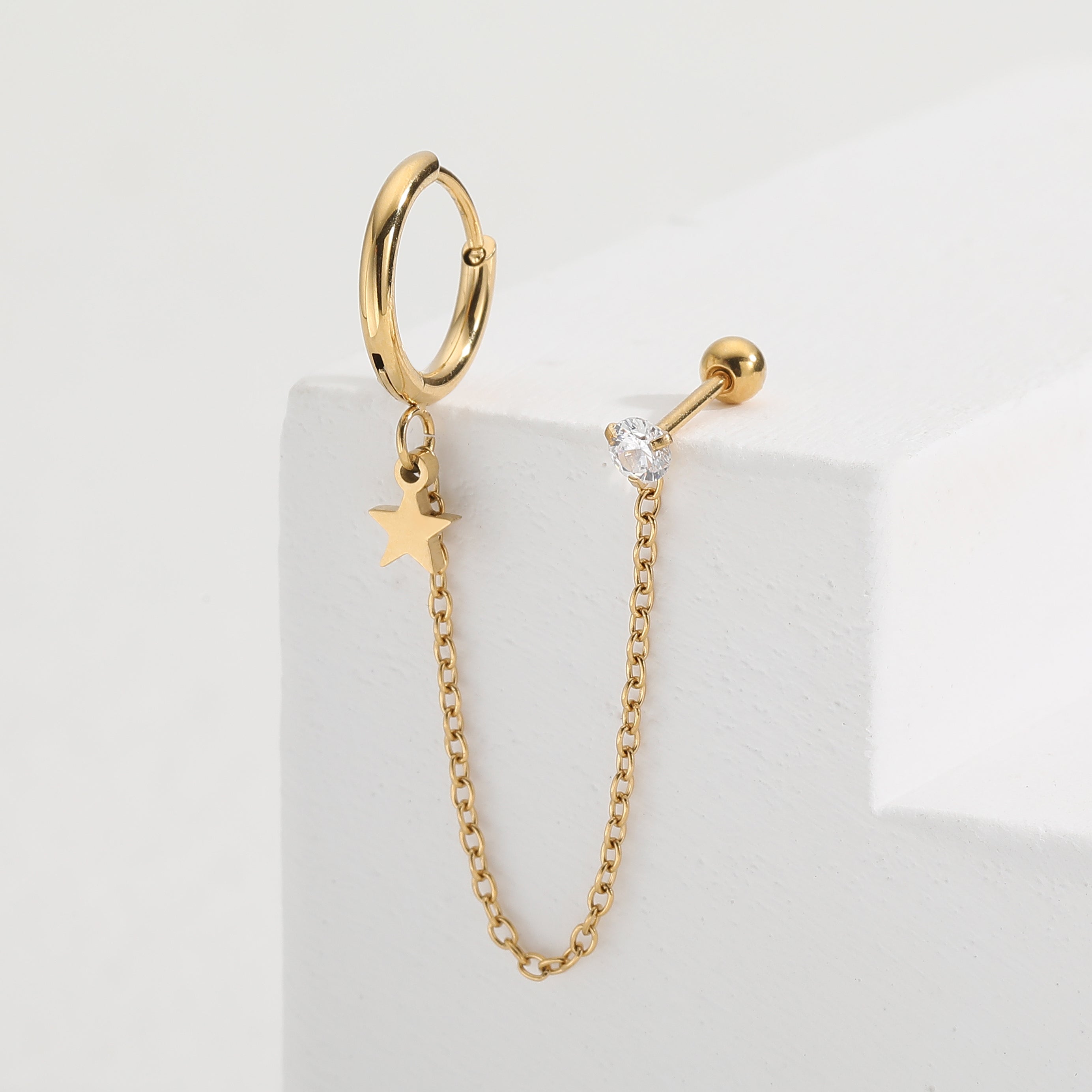 עגיל ל-2 חורים חישוק כוכב זרקון