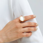 טבעת גולדמן גולד היא טבעת ייחודית ואומנותית בשילוב דמוי אבן לבן פנינה.