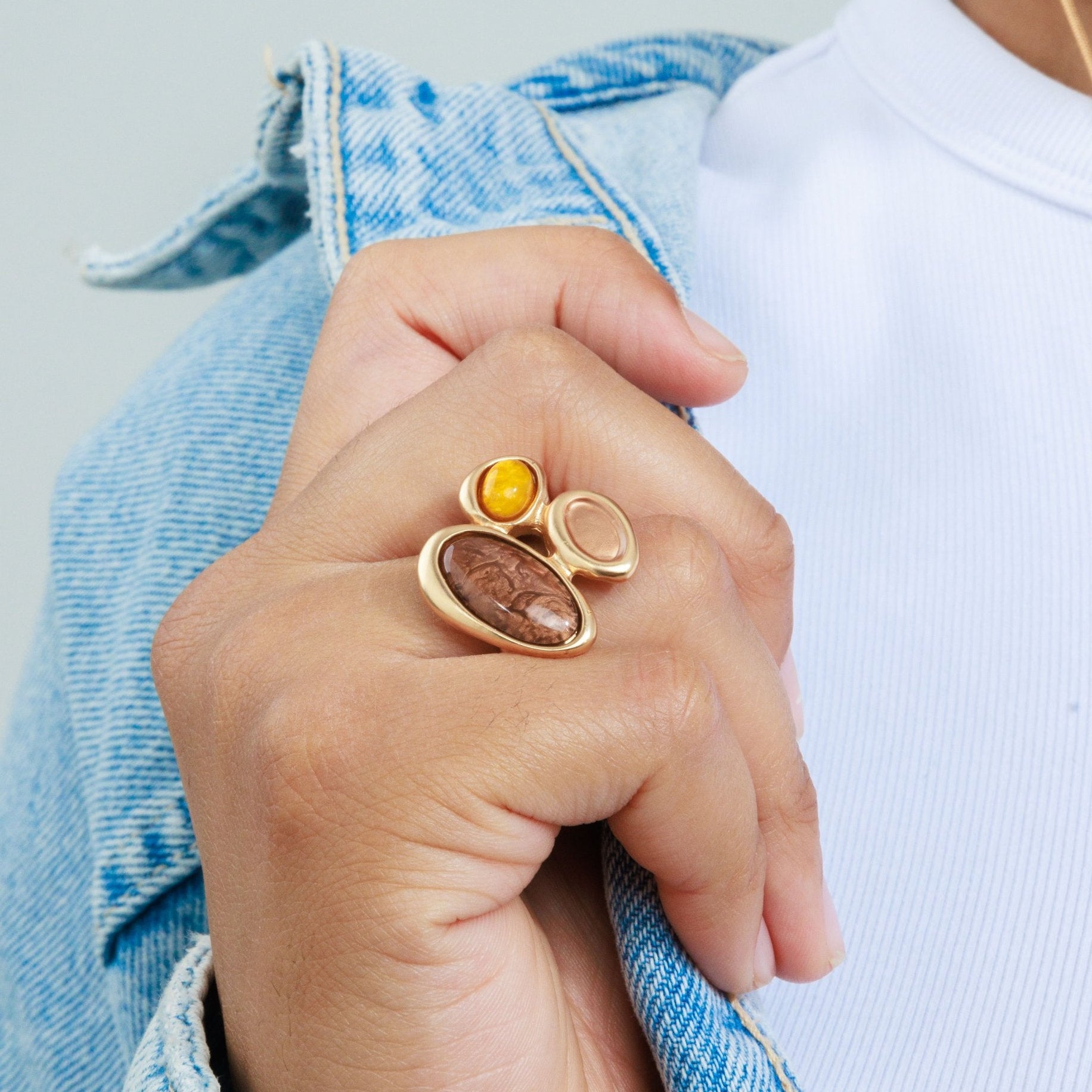 טבעת דאייר גולד היא טבעת מעוצבת בעלת אלמנטים ייחודיים בגווני חום-זהב.