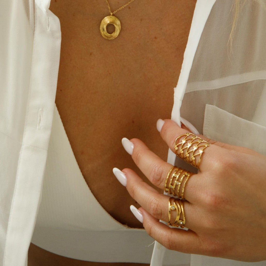 כל תכשיט מהקולקציה, מעגילים ושרשראות ועד לצמידים וטבעות, עשוי מסטיינלס סטיל שמבטיח גימור מושלם ושמירה על מראה חדש לאורך זמן.