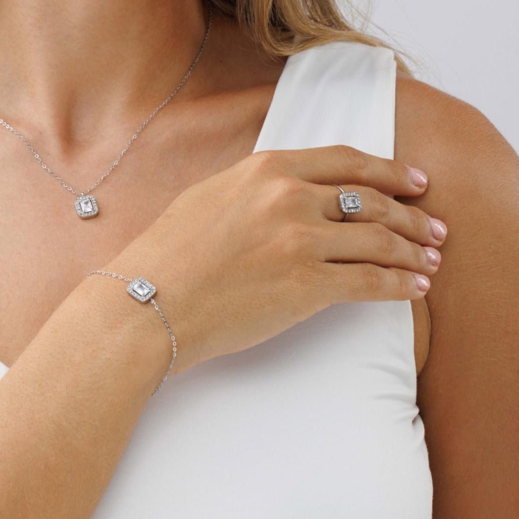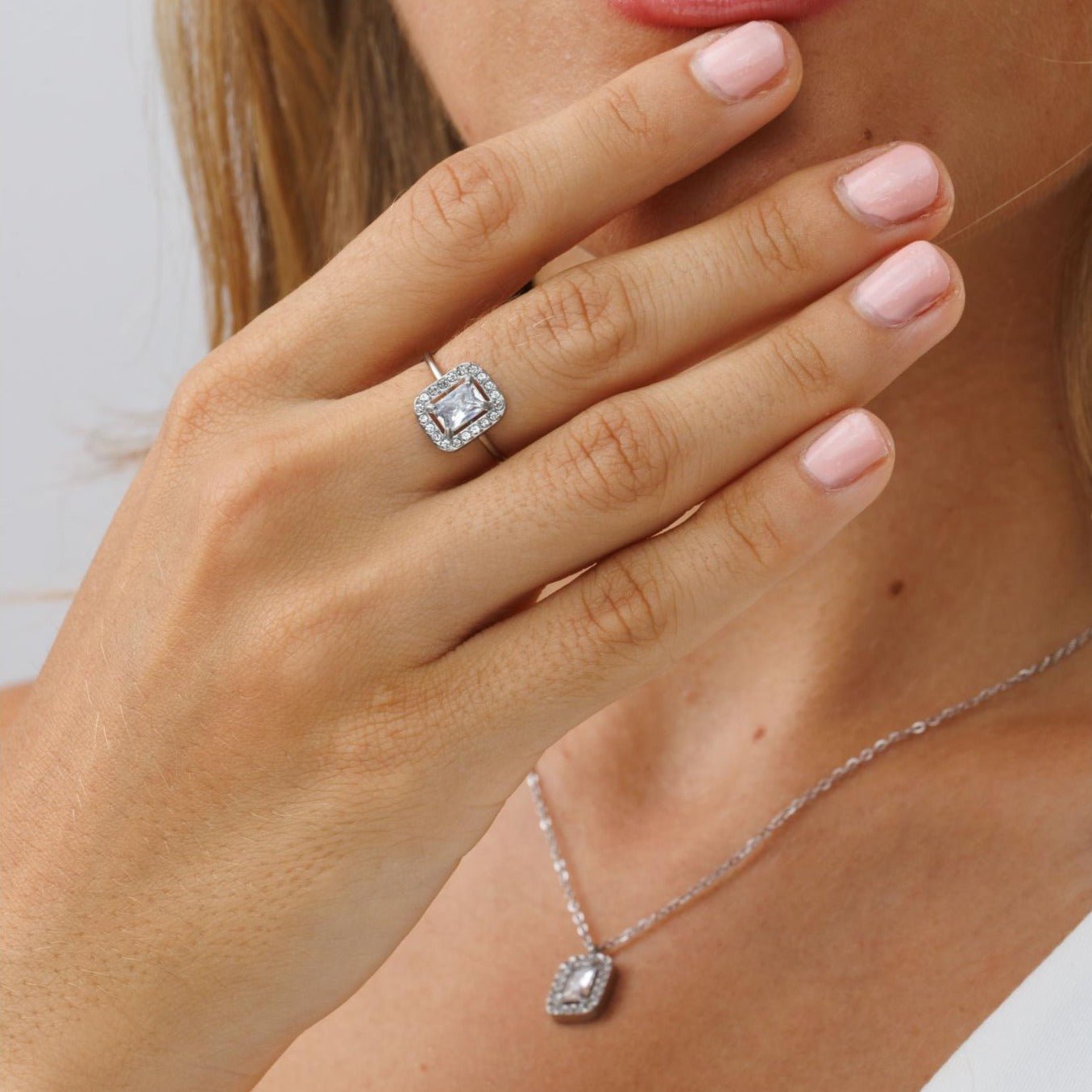 טבעת מלבן דיימון היא טבעת זרקונים משובצים עדינים הכי קלאסית שיש.