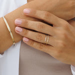 הטבעת בשילוב זרקונים משובצים וצדף למראה חדשני והורס.