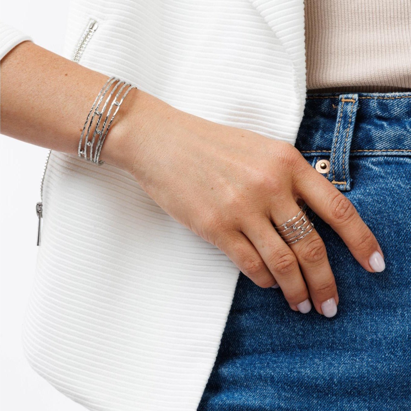סט צמיד וטבעת לנסמי הוא סט שורות הורס בשילוב זרקונים עדינים למראה היסטרי.