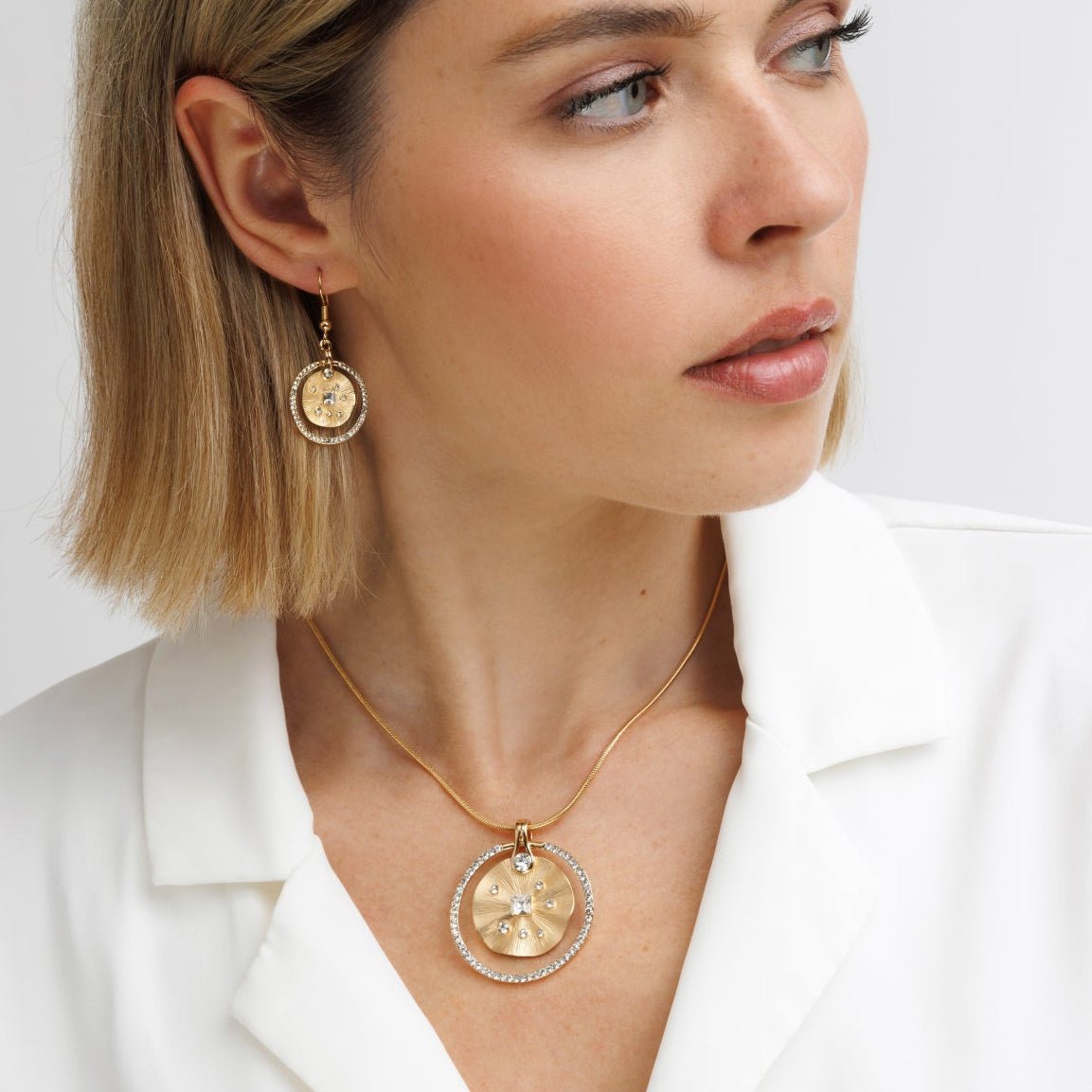 סט שרשרת ועגילי אלזה ההוא סט מהמם בעל תליונים מעוגלים ומתוחכמים בשילוב זרקונים עדינים.