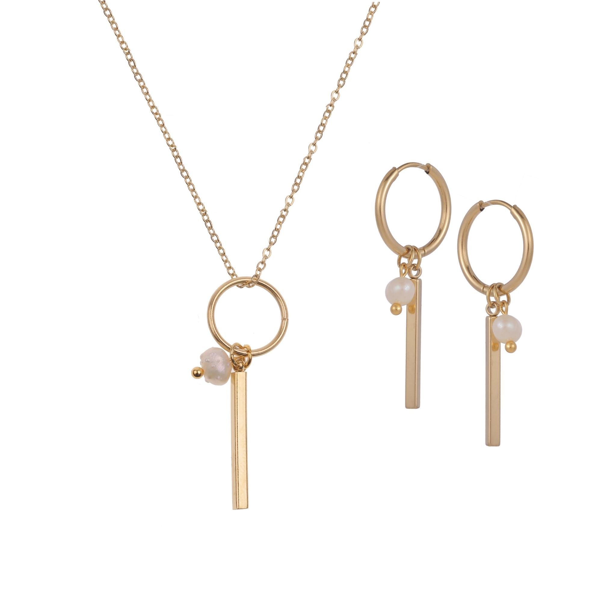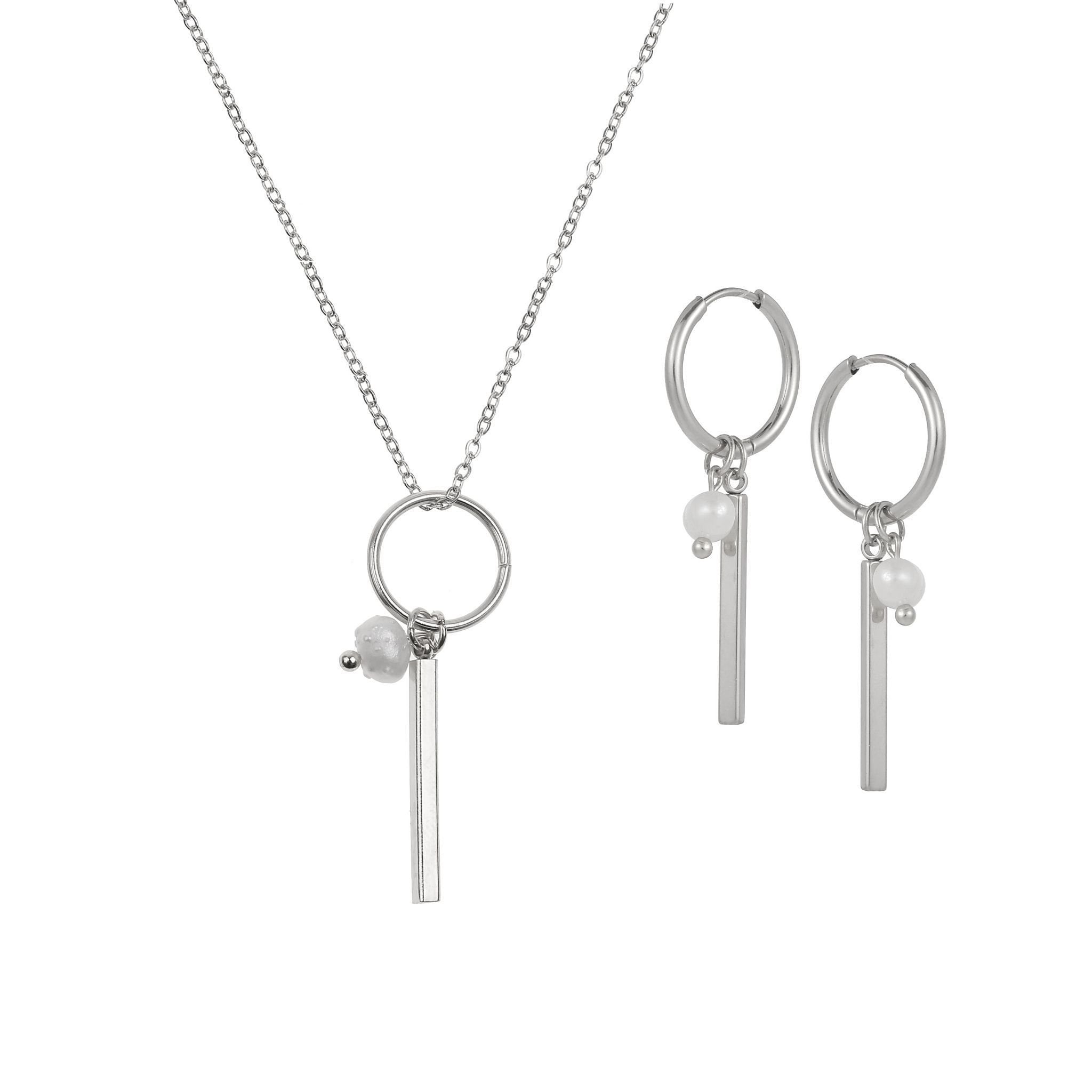 סט שרשרת ועגילי חישוק קליק ליין פרל