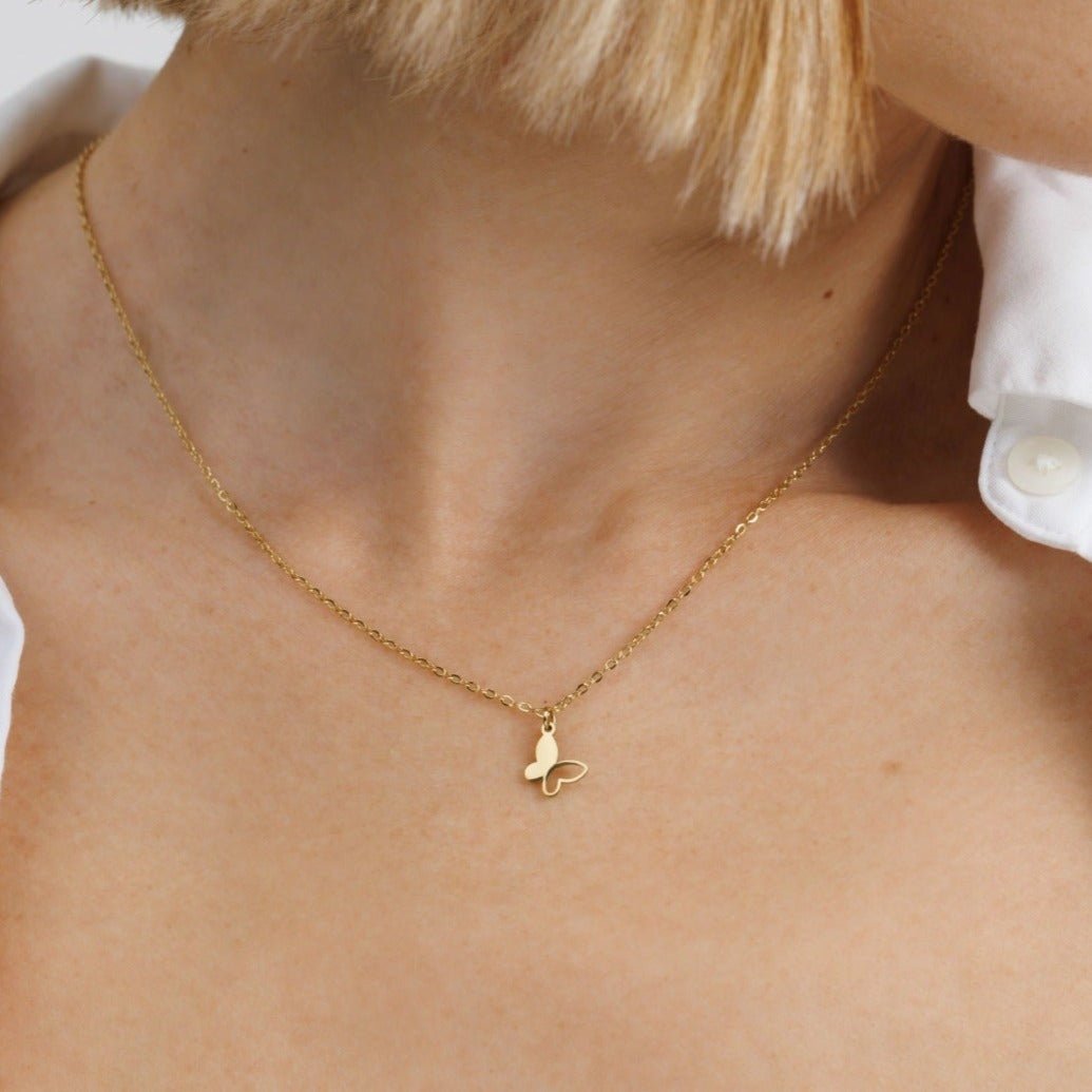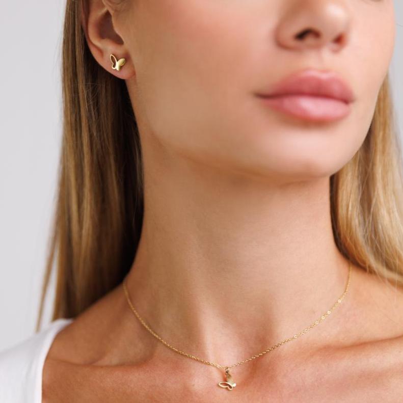 סט שרשרת ועגילי טייני הולו פרפר הוא סט עם תליון פרפר עדין, קלאסי ונצחי.