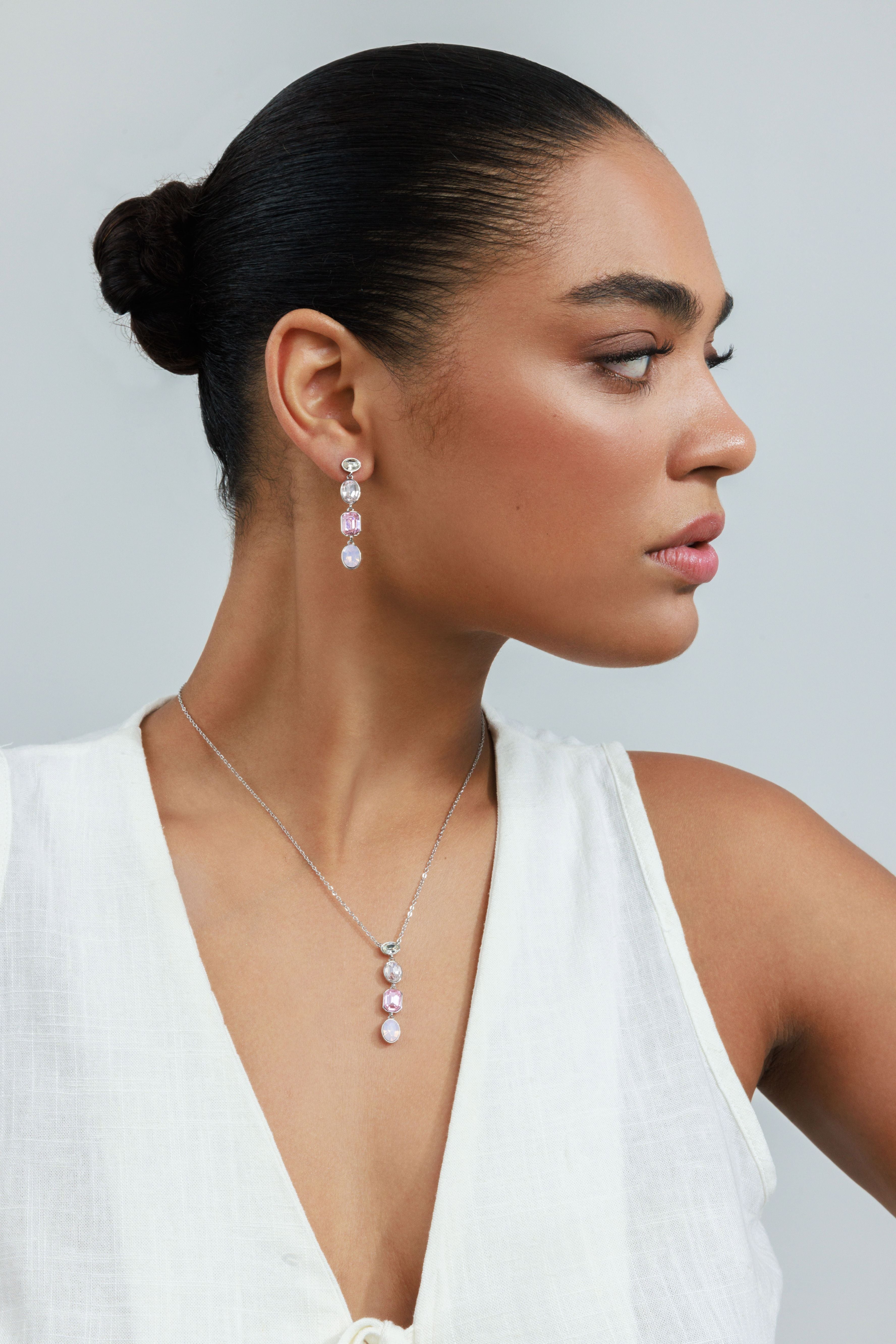 סט שרשרת ועגילי לונג קאי לייט פינק