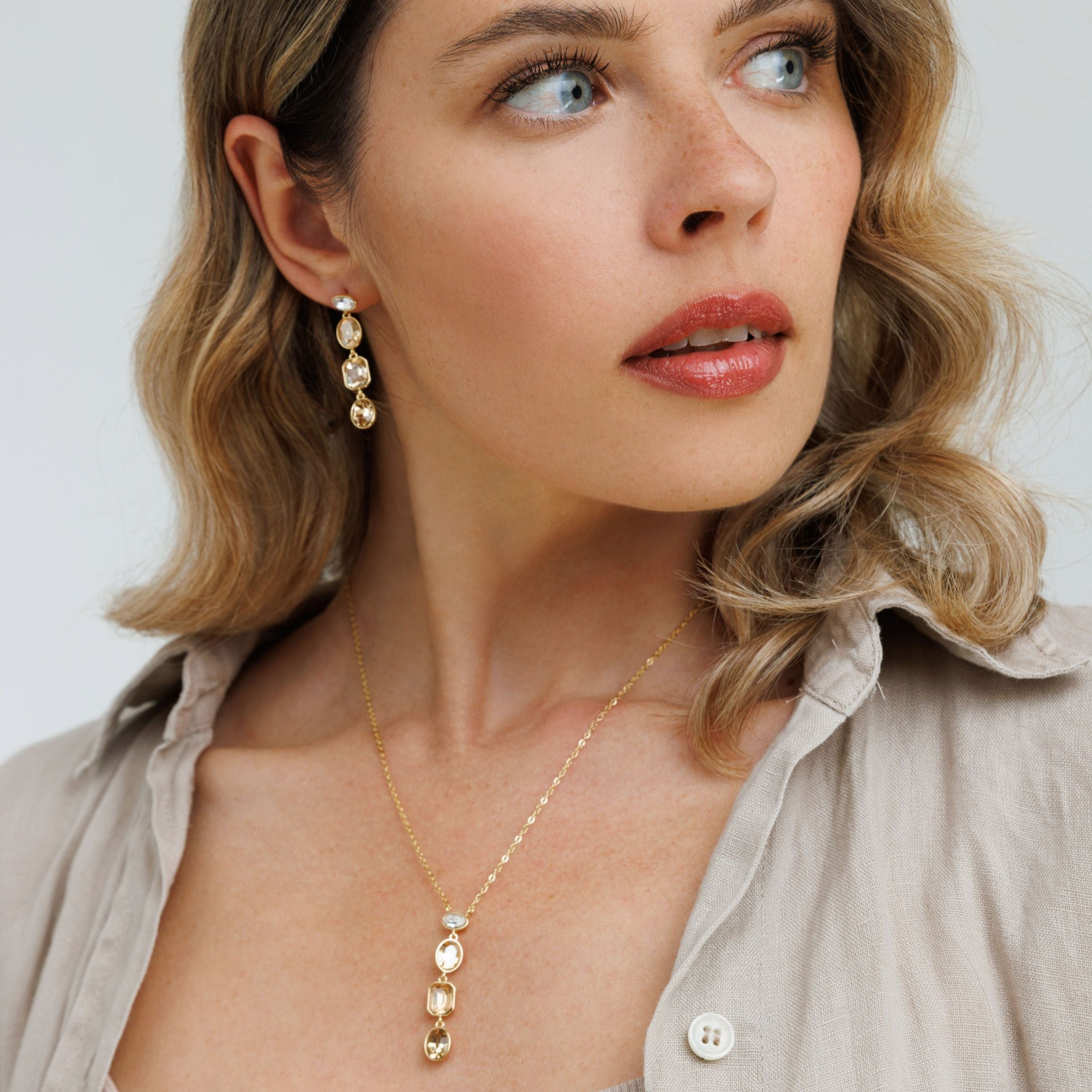 מידות: שרשרת 43 ס"מ+5 ס"מ הארכה, עגיל אורך 4 ס"מ, רוחב 0.75 ס"מ.