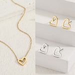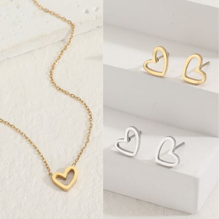 סט שרשרת ועגילי ניו הולו לב הוא סט מושלם של שרשרת עדינה ועגילים צמודים עם אלמנט לב חלול עדין וייחודי.