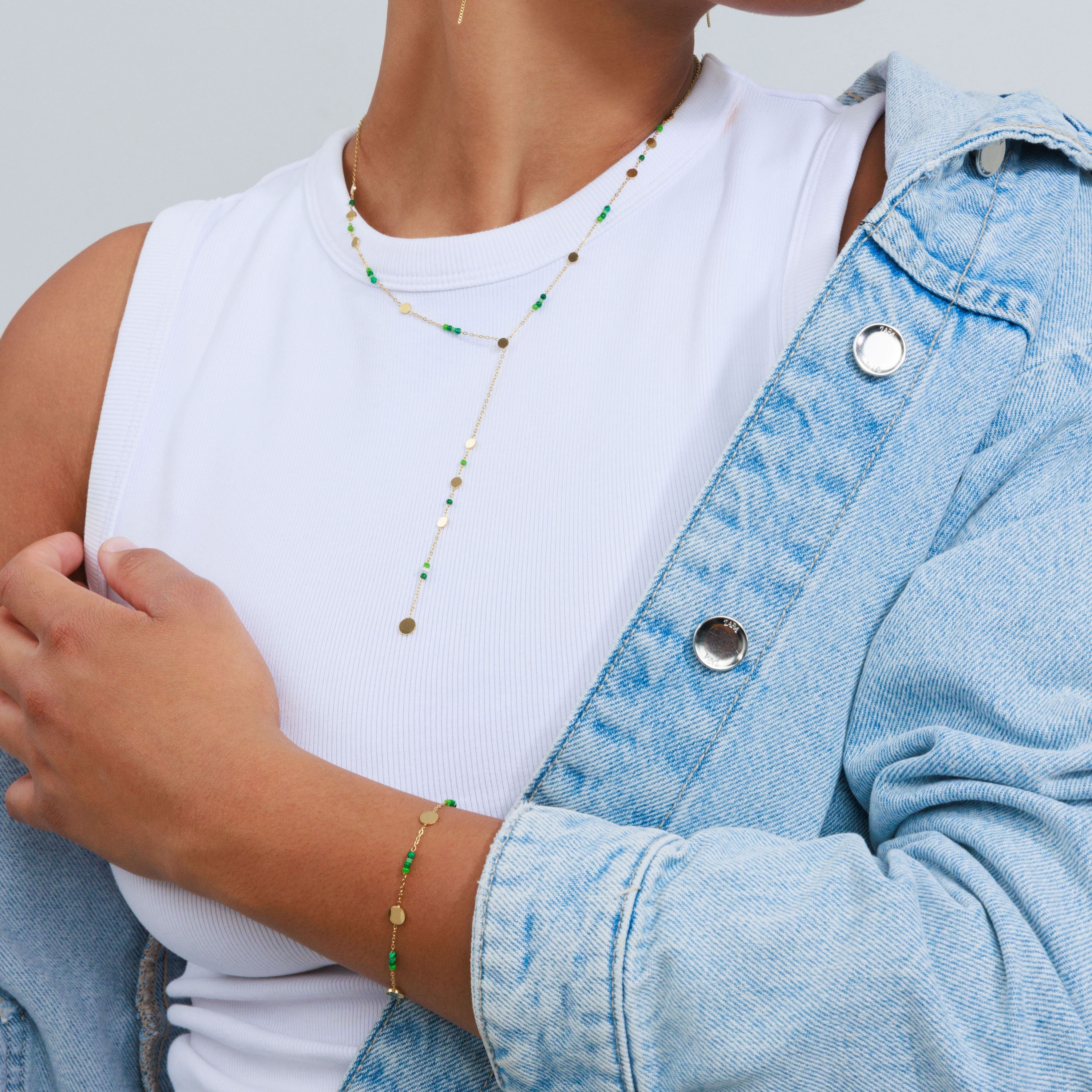 סט שרשרת וצמיד ביילי הוא סט מושלם המשלב תליונים מעוגלים וחרוזים עדינים למראה עדין ואלגנטי.