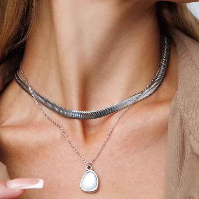 - תכשיטי Stainless Steel בגוון כסף עם אבנים מודבקות