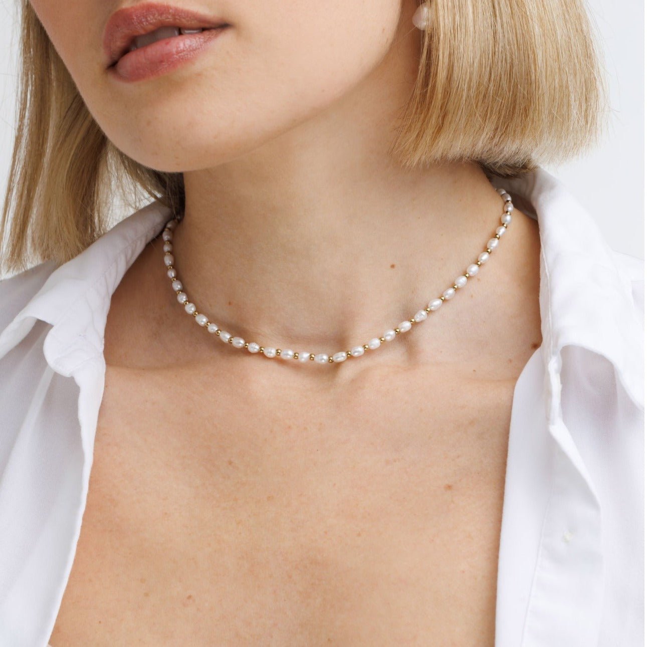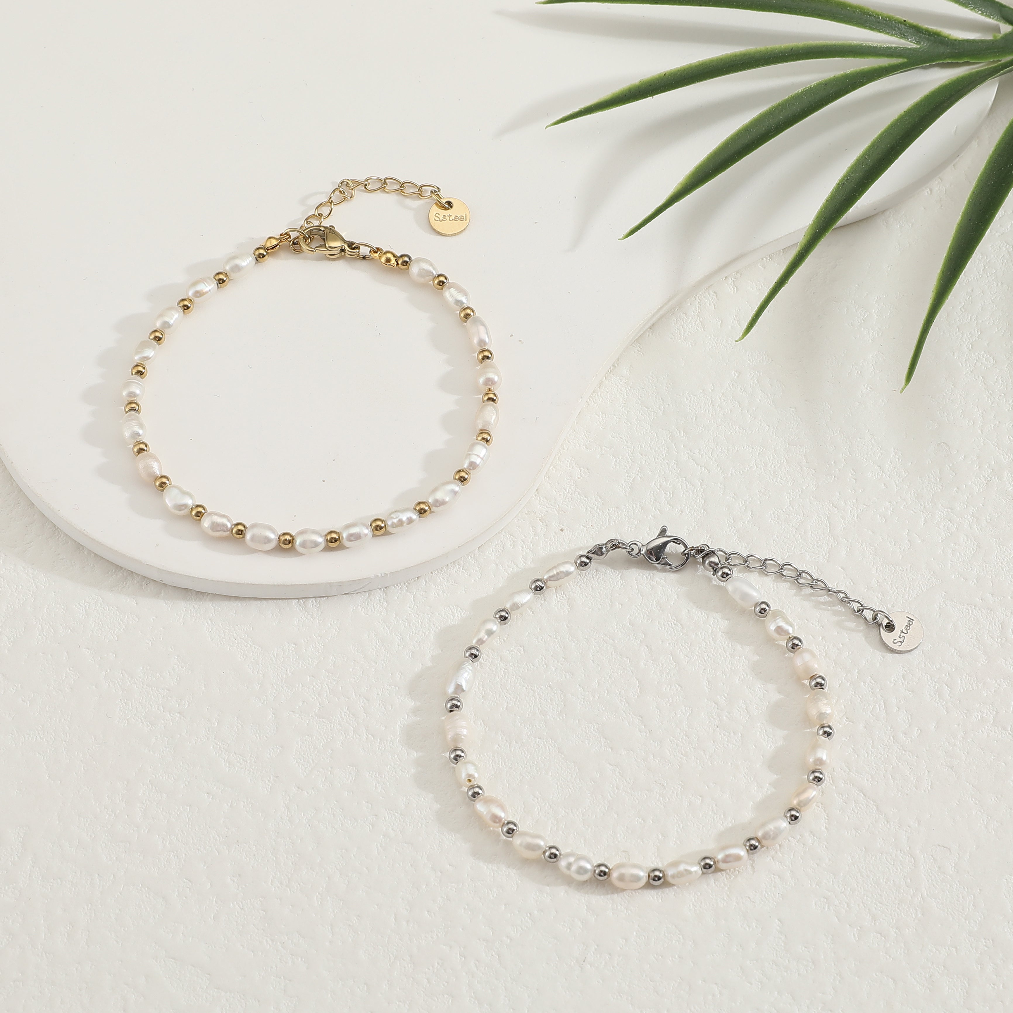 סט שרשרת וצמיד פנינים דק, עדין וקלאסי בשילוב עיגולים עדינים למראה קלאסי ונקי.