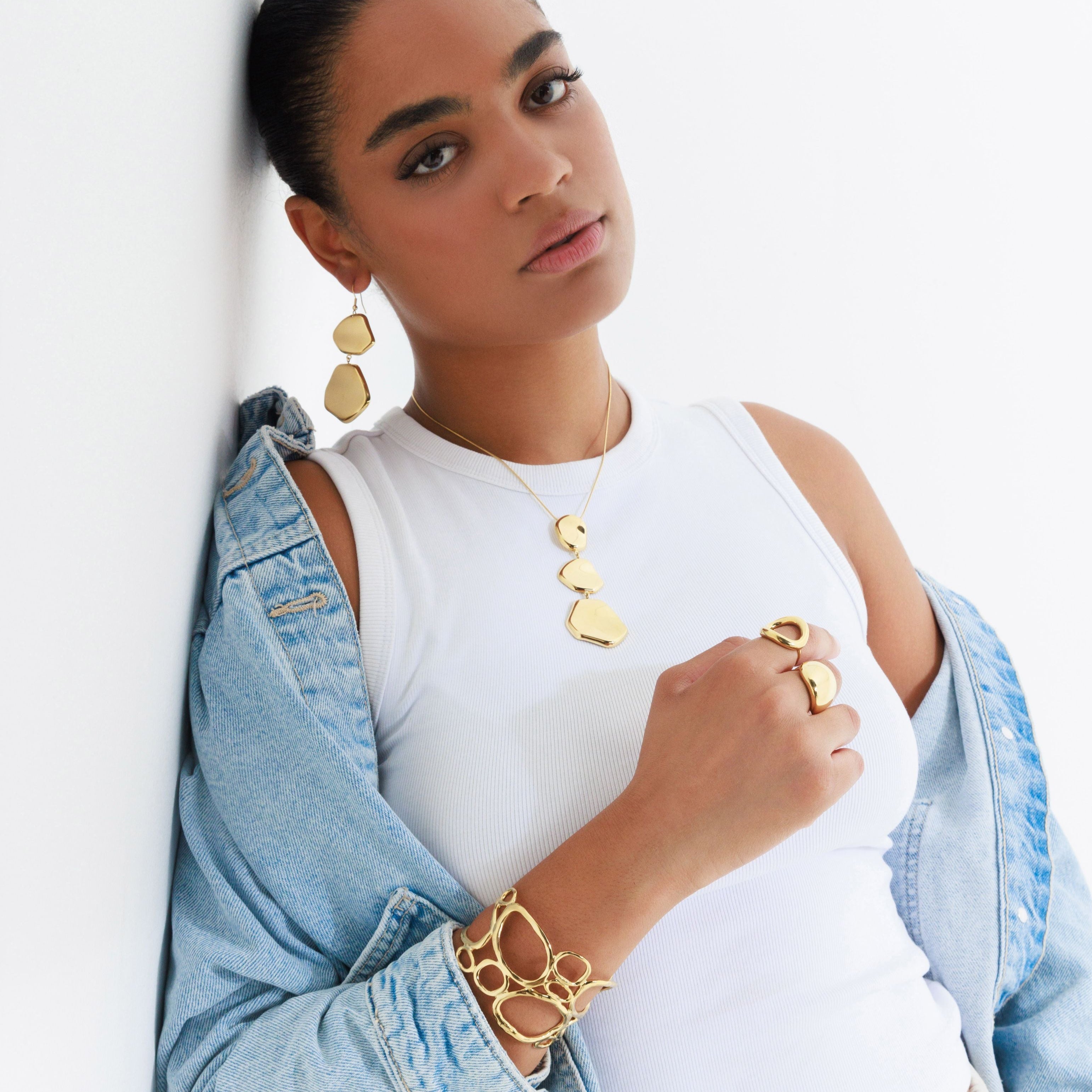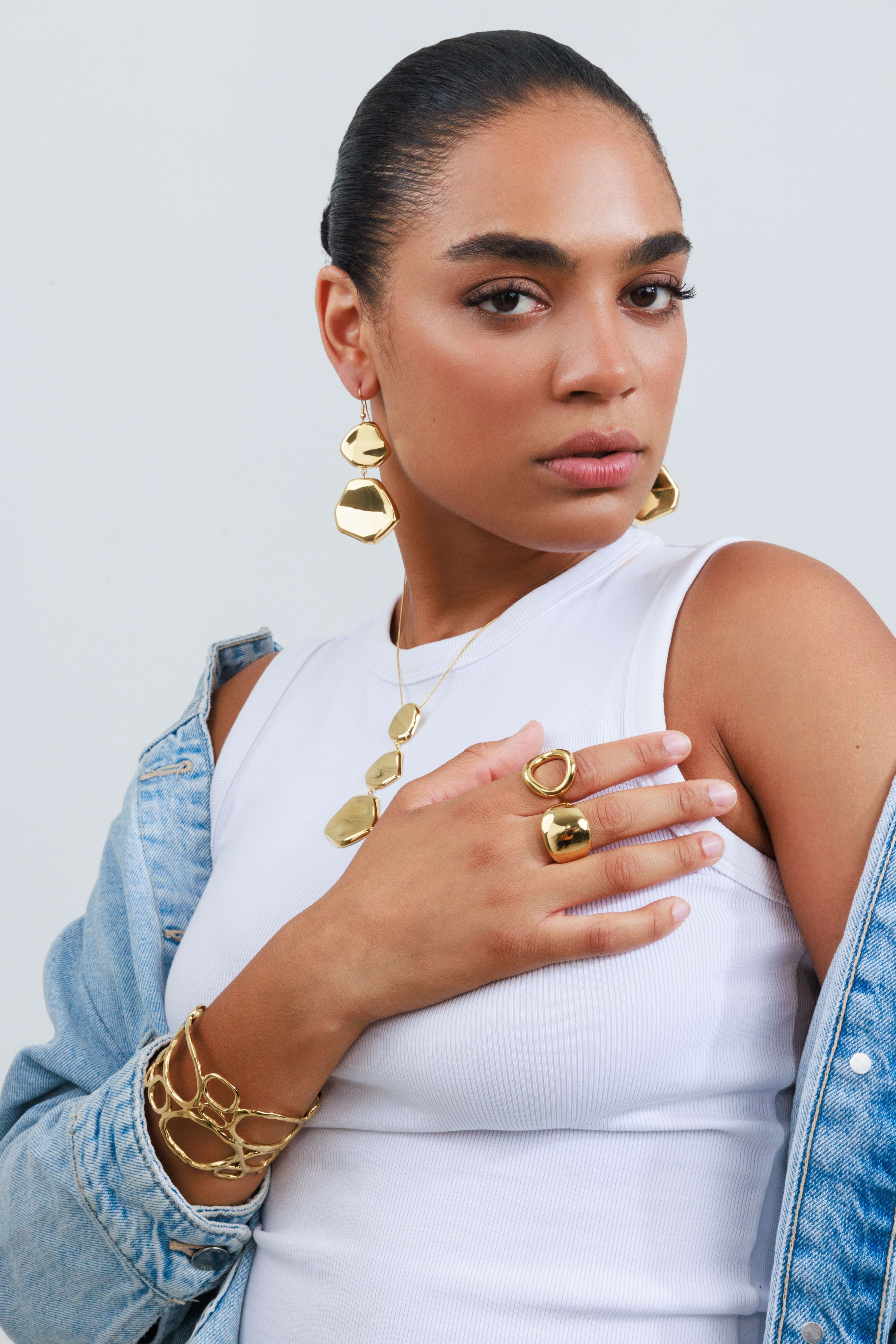 סט שרשרת, צמיד ועגילי מוריאל הוא סט תליונים מעוצבים וגיאומטריים למראה מלא בנוכחות ובסטייל.