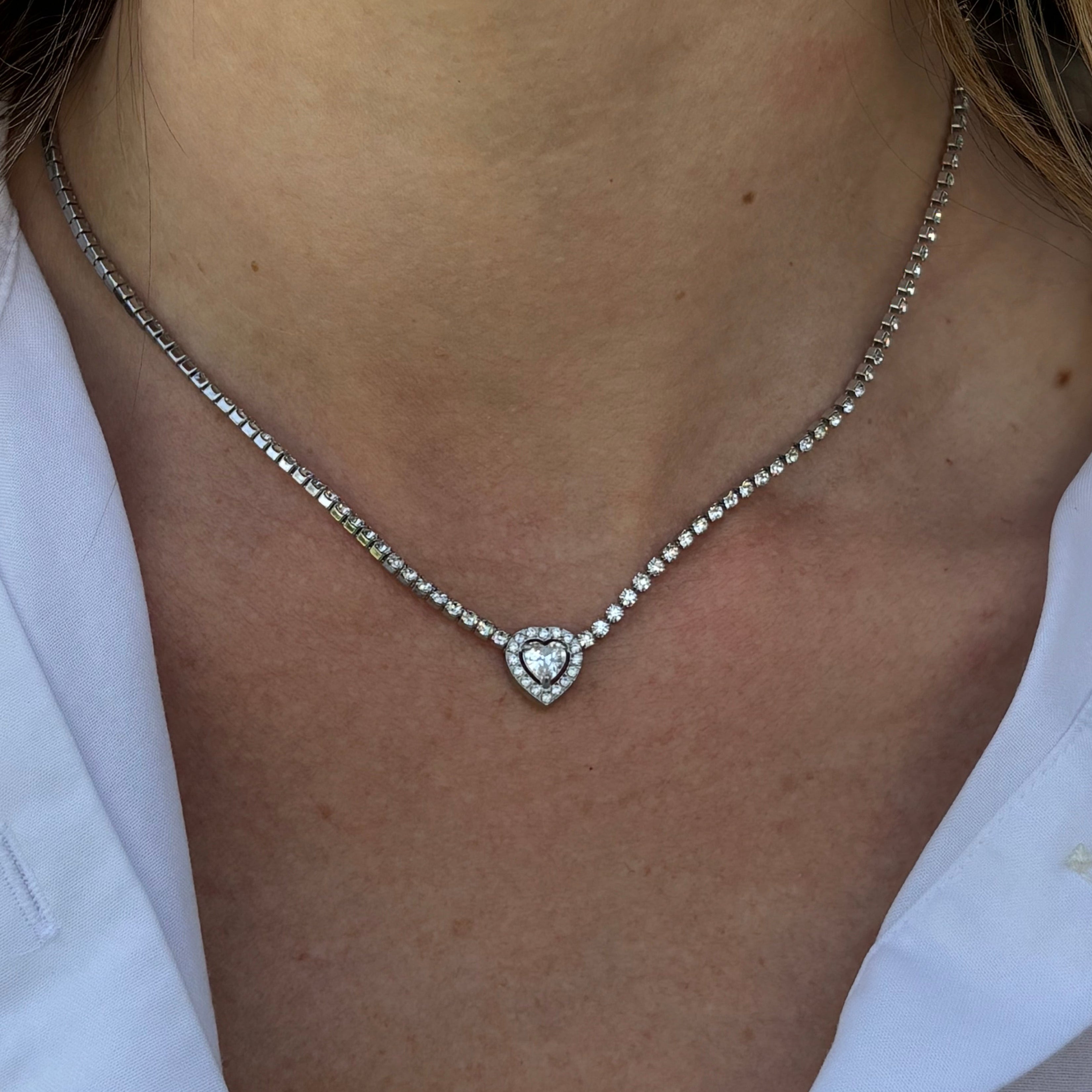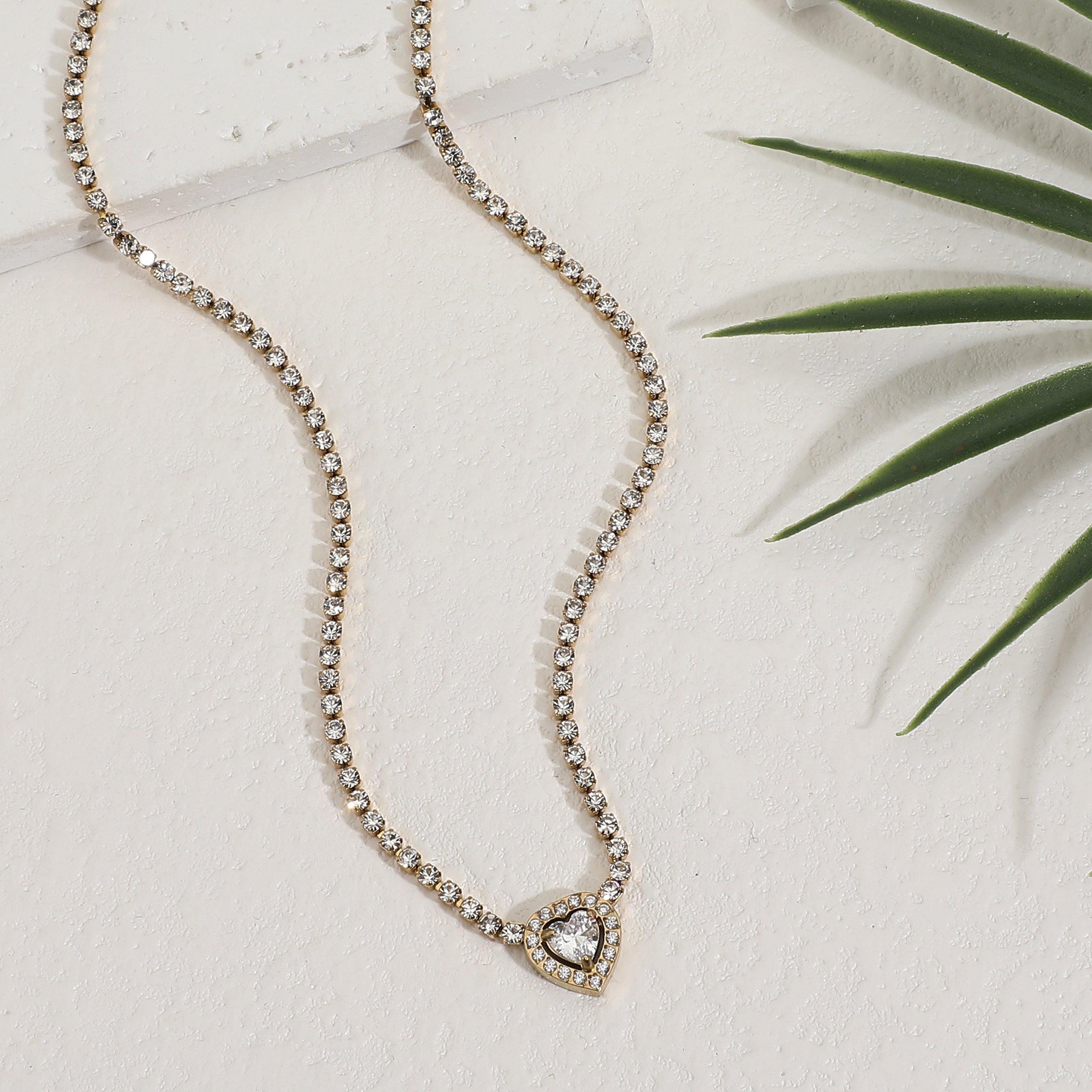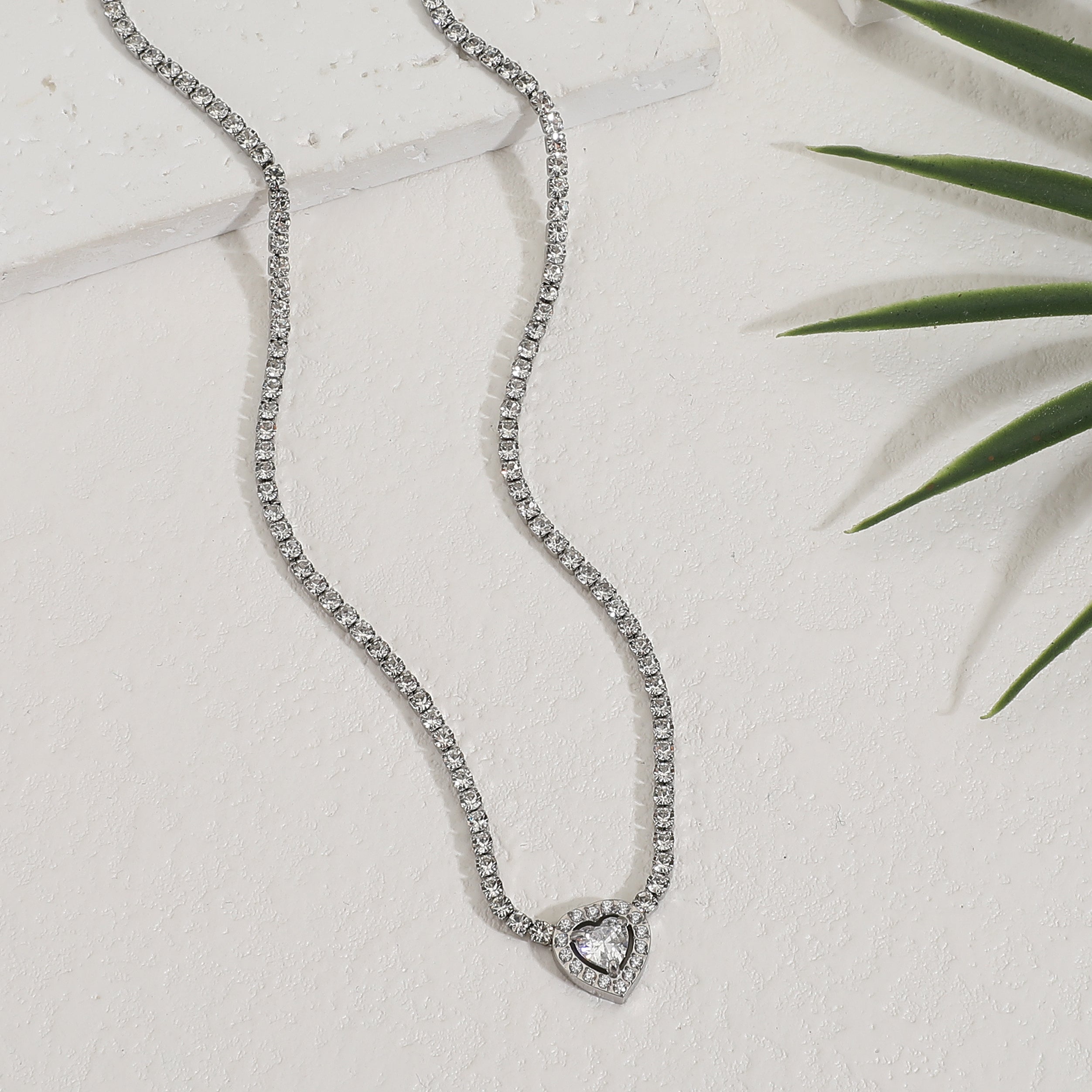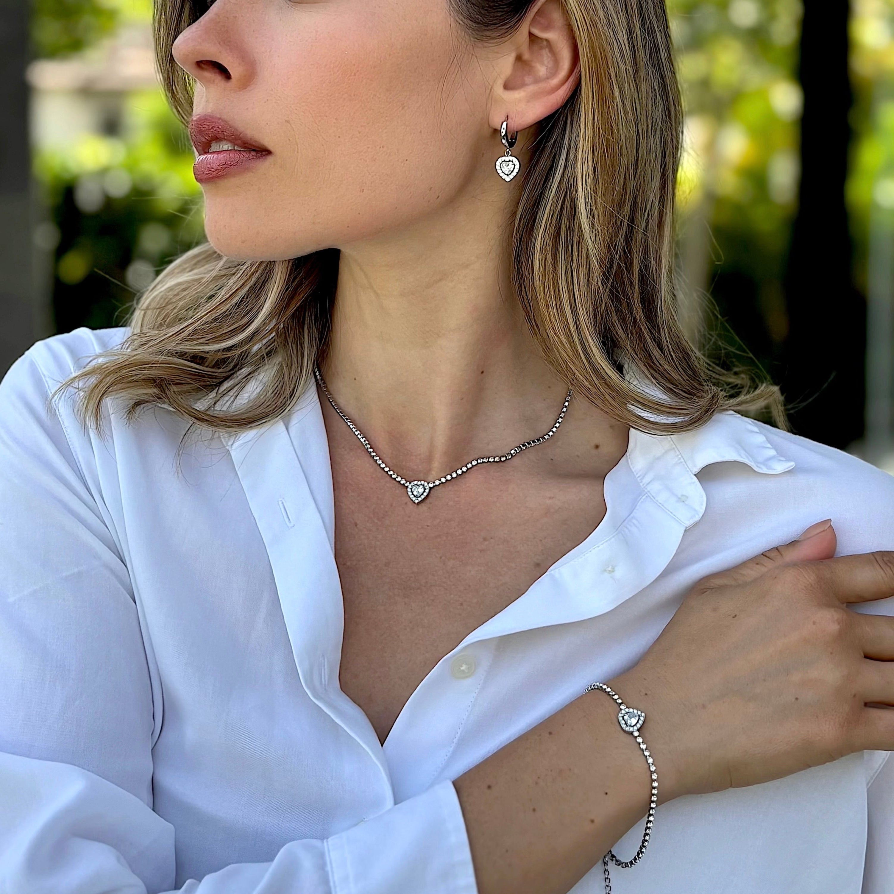 סט שרשרת, צמיד טניס ועגילי חישוק לב דיימון