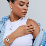 סט שרשרת, צמיד ועגילי מוריאל הוא סט תליונים מעוצבים וגיאומטריים למראה מלא בנוכחות ובסטייל.