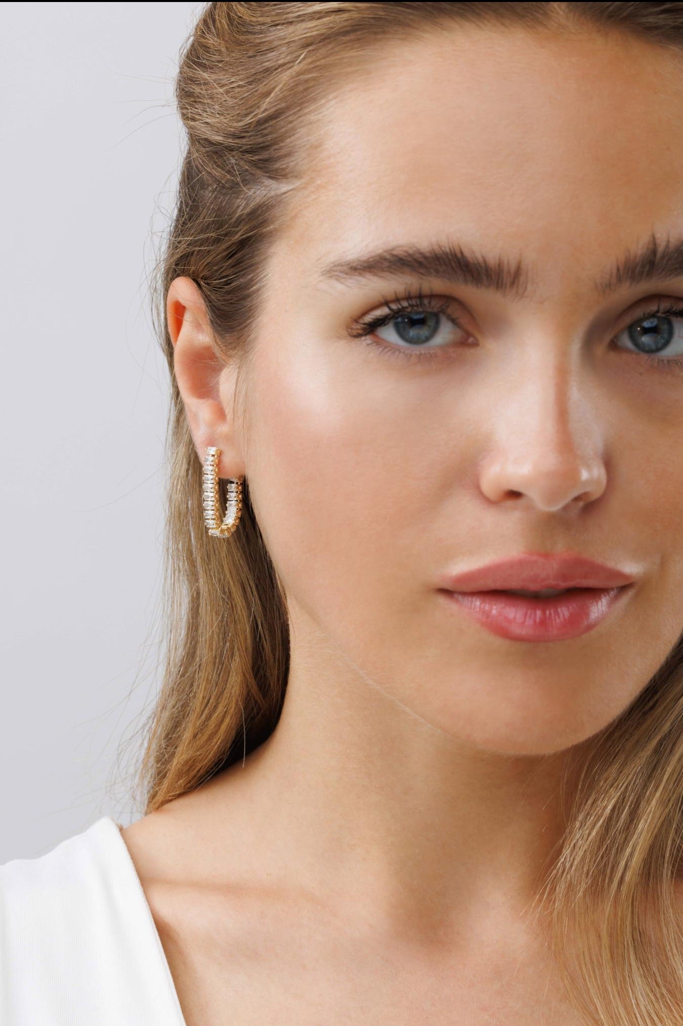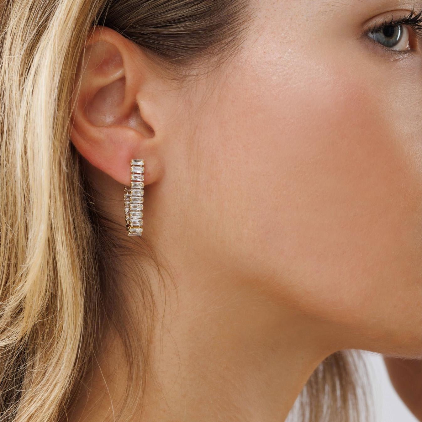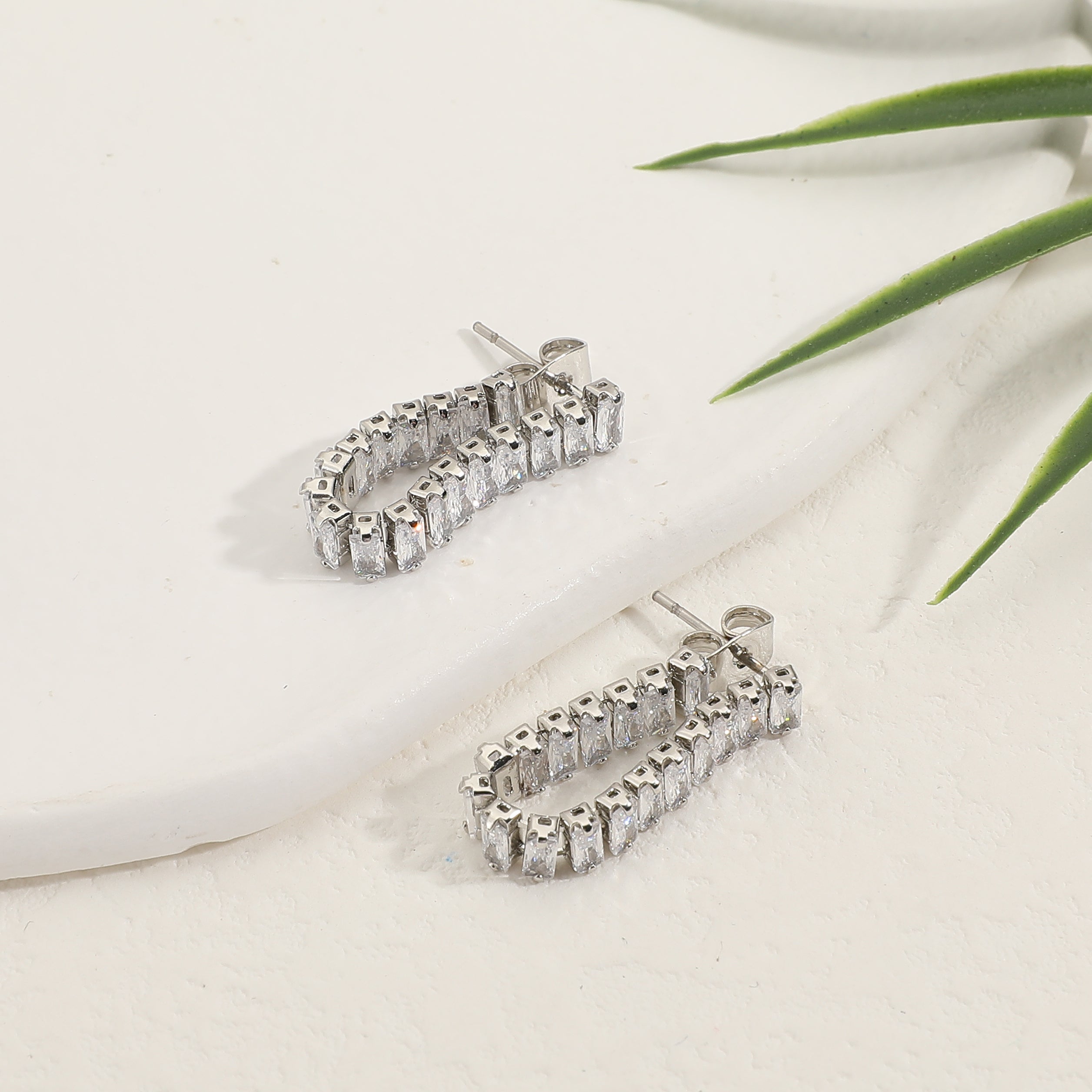העגילים בעיצוב מלבנים בסטייל "בגט" זרקונים עם סגירה אחורית למראה בלתי נשכח.