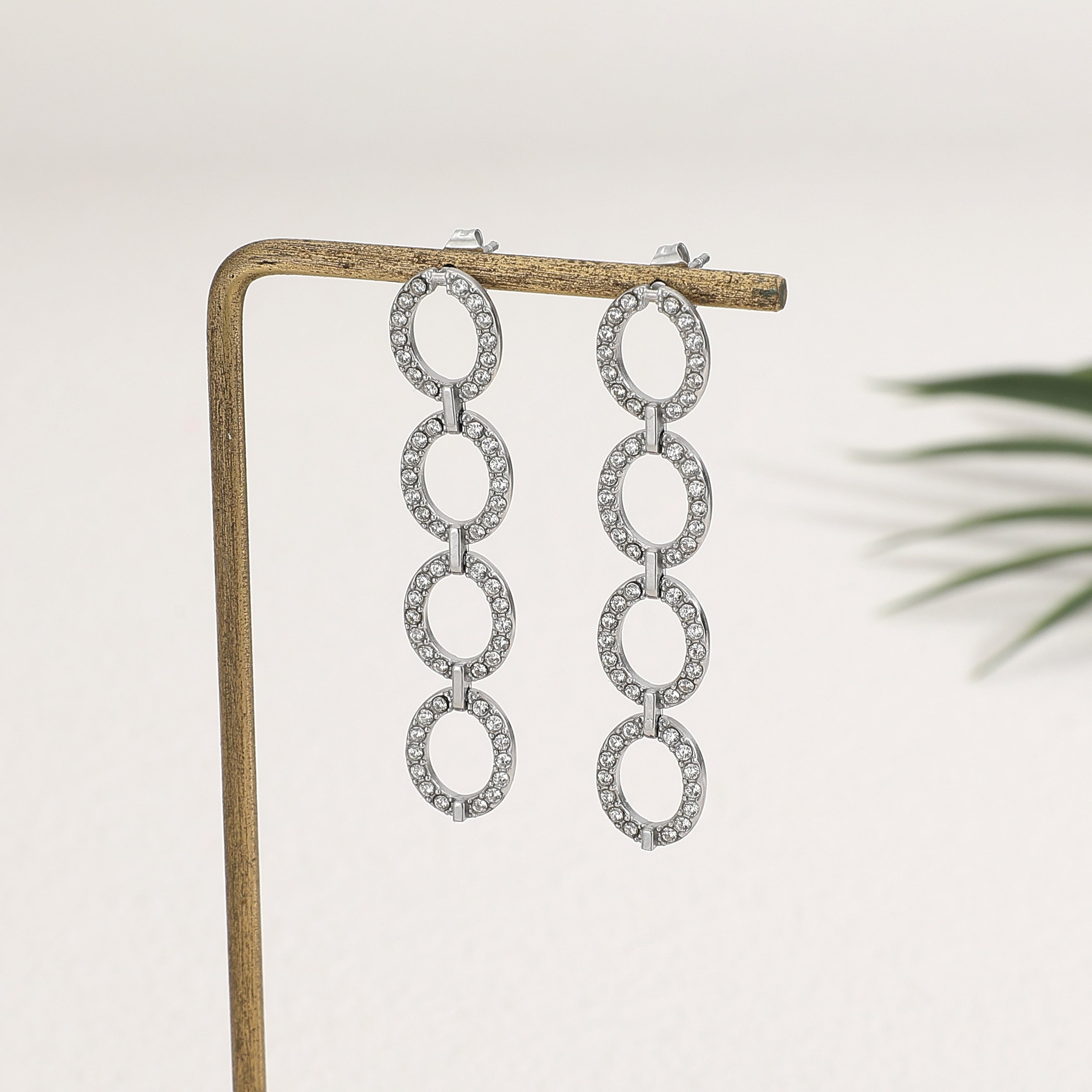 • תכשיטי Stainless Steel בגוון כסף עם אבנים מודבקות
