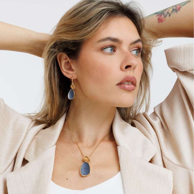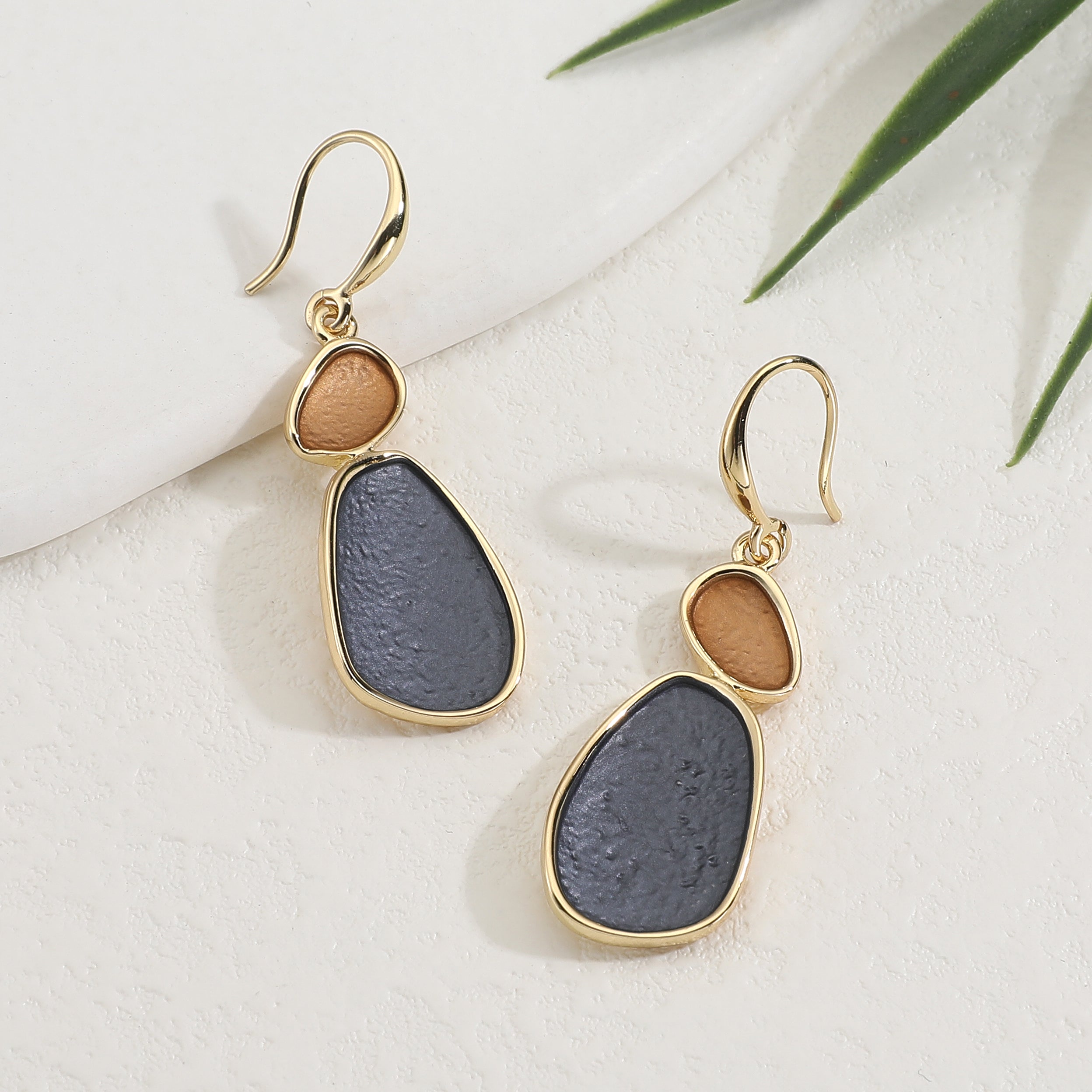עגילי גבי גולד גריי הם עגילי תלייה בעיצוב קלאסי עם טוויסט של גוונים עמוקים של צביעה ייחודית.