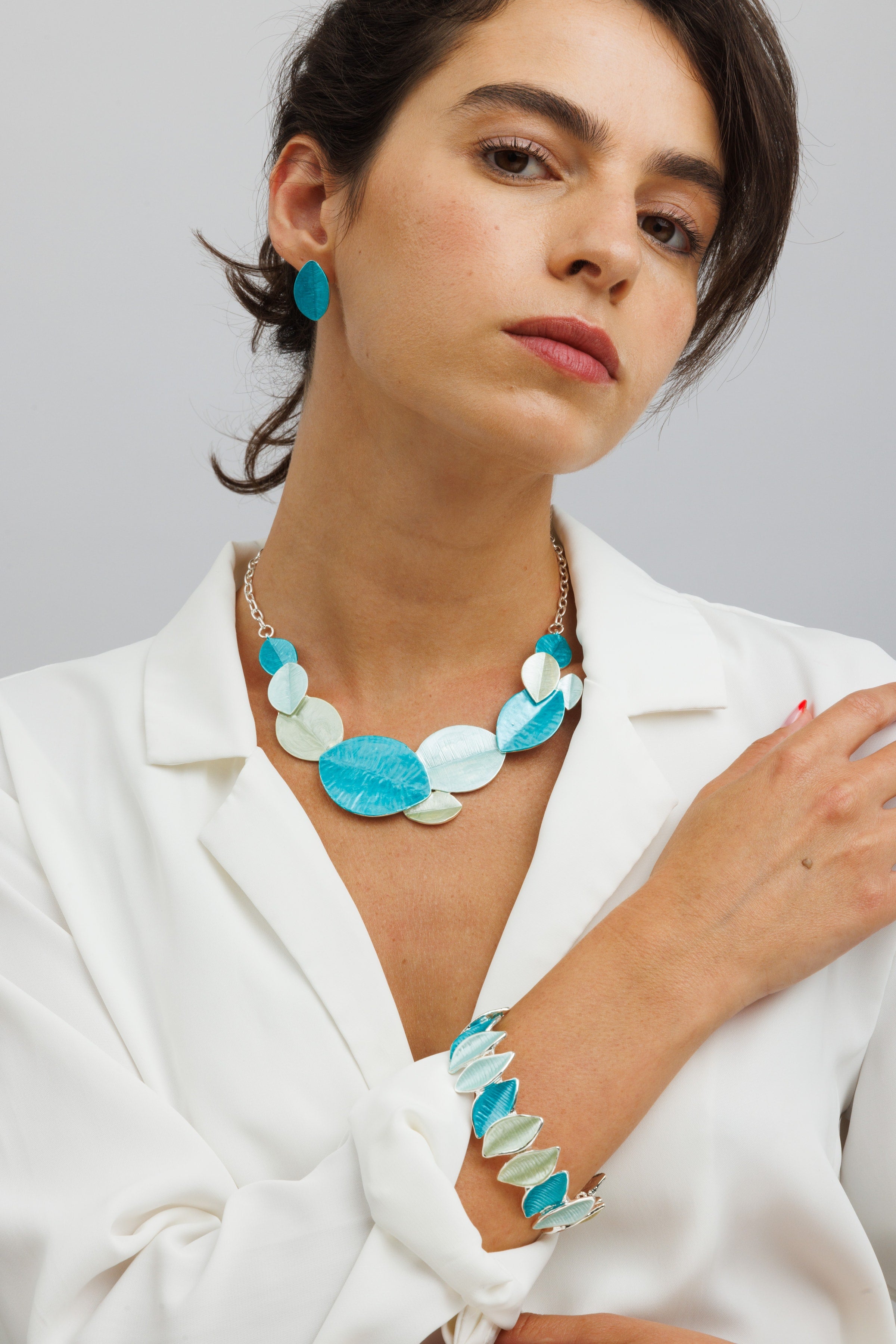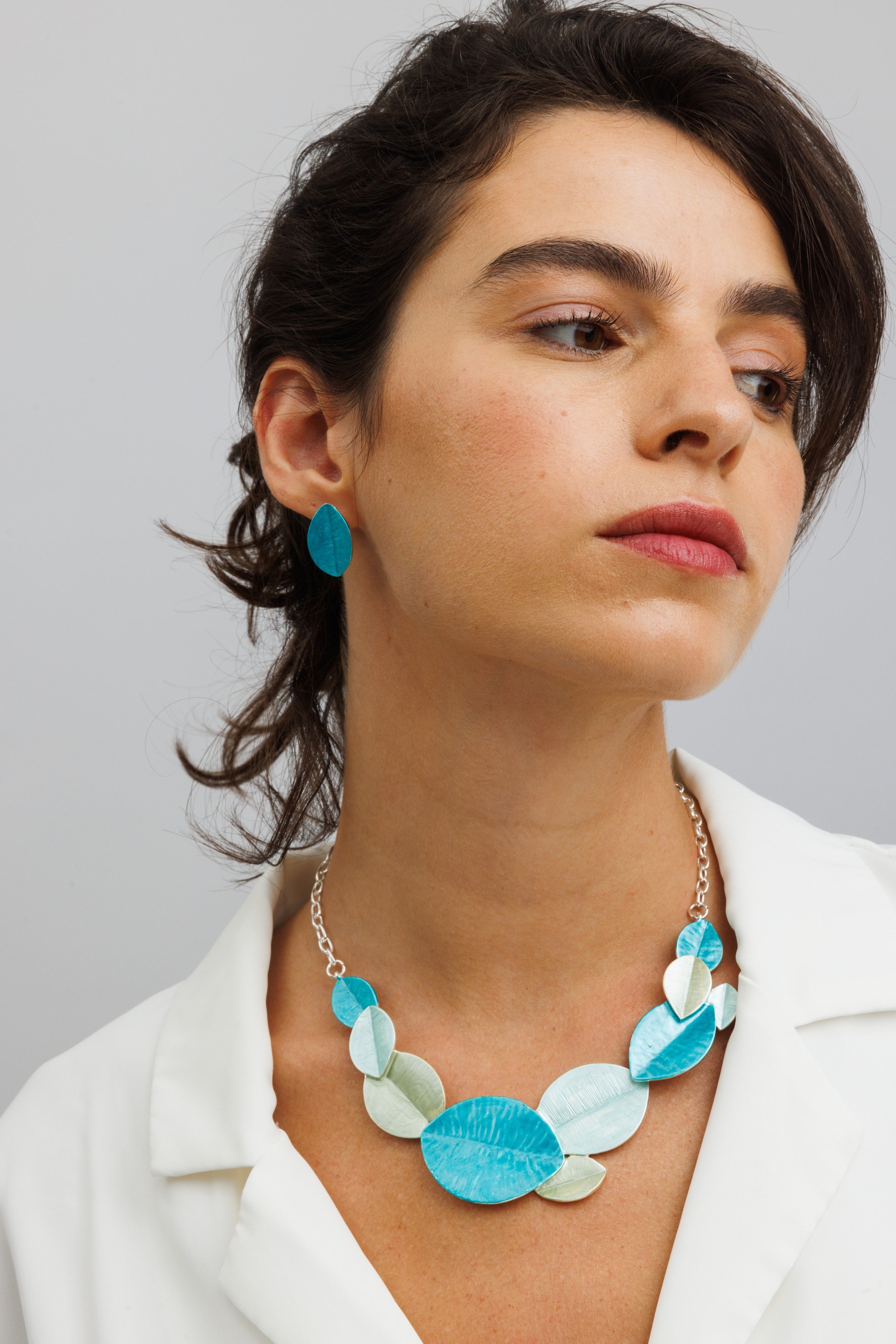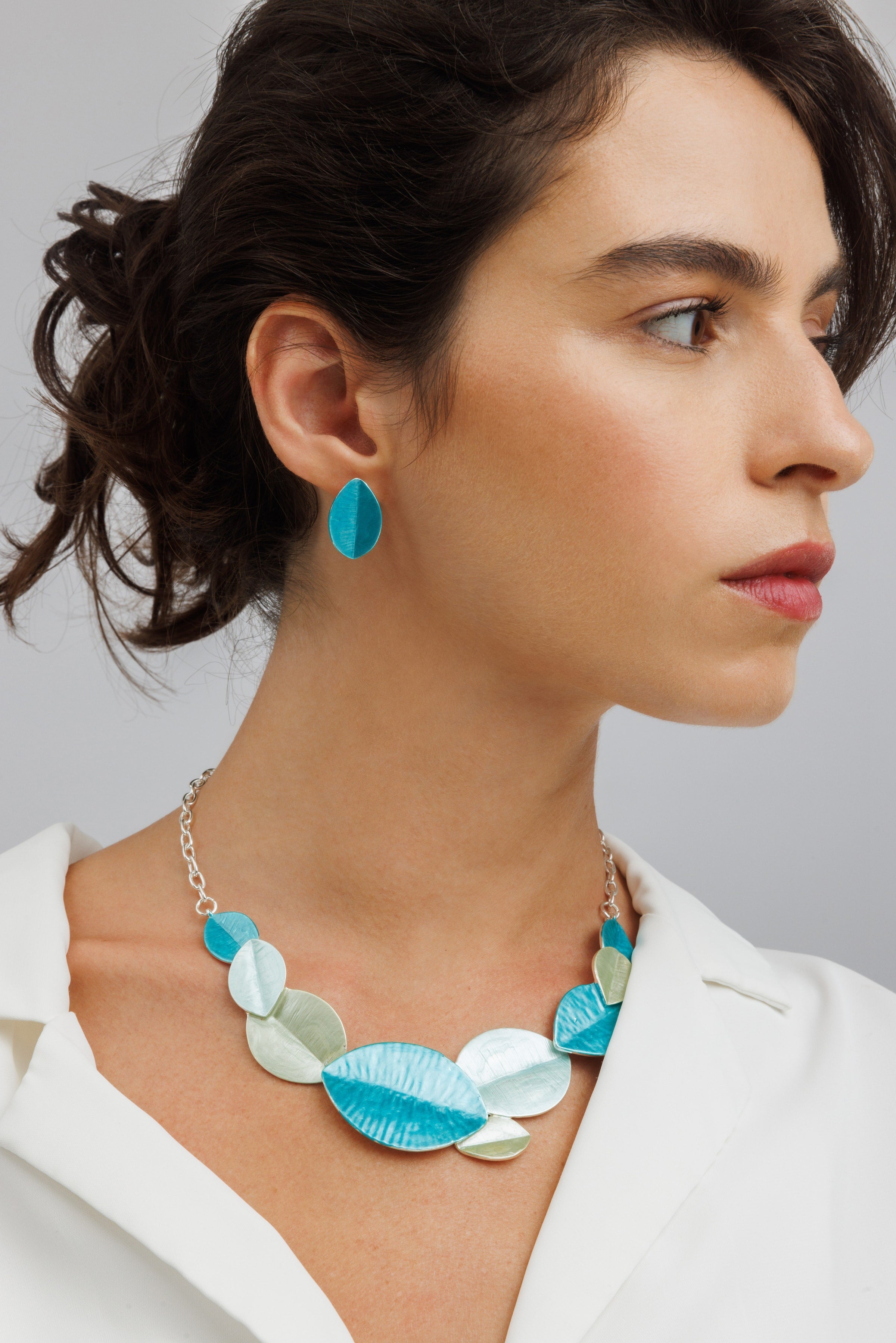 עגילי גרנד ליף טורקיז הם עגילים צמודים סופר ייחודיים ועם נוכחות בלתי נשכחת.