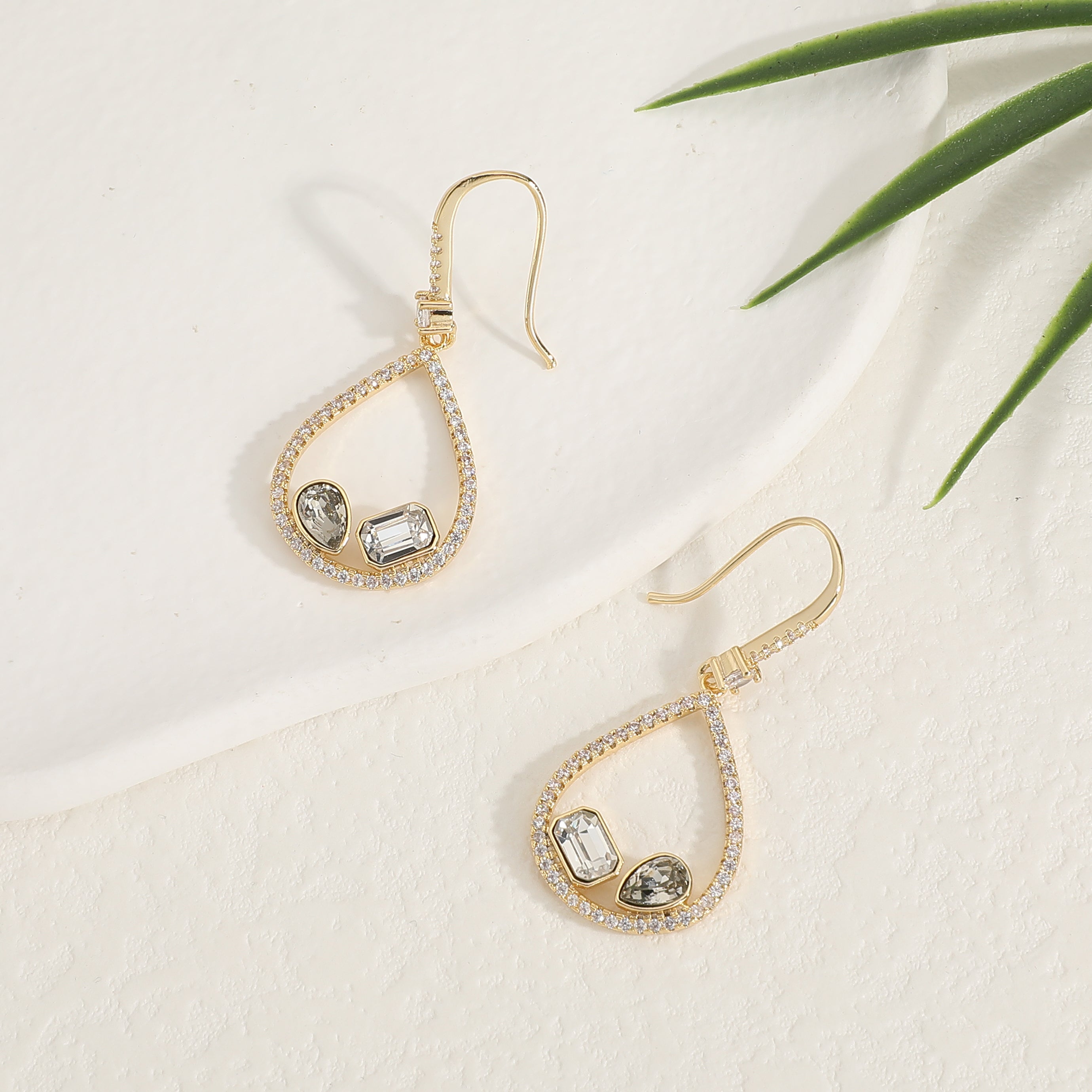 עגילי דרופ בלינג סמוקי בשילוב glass בגווני אפור המאירים את הפנים ומתאימים לכל לוק יוקרתי שרק תבחרי.