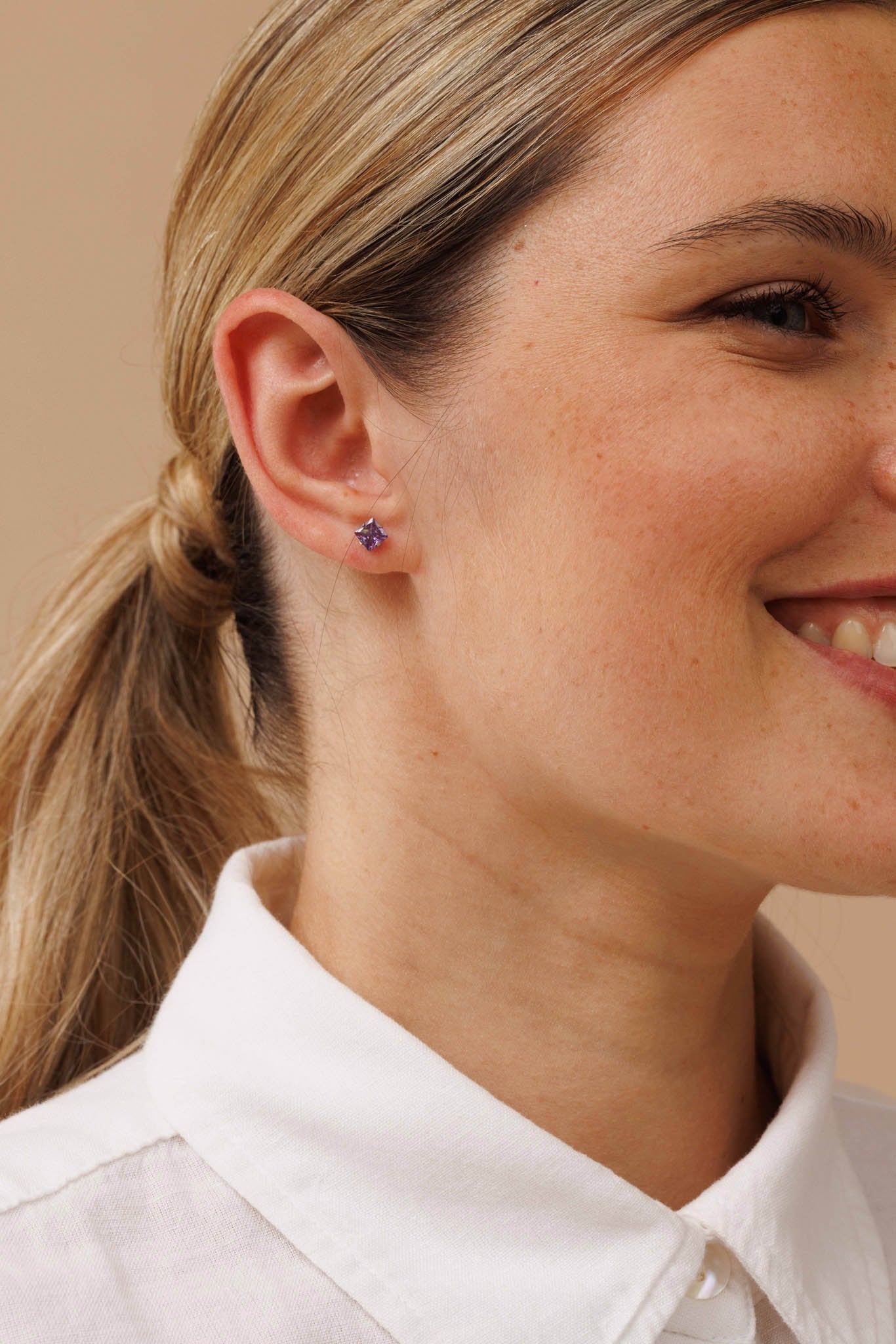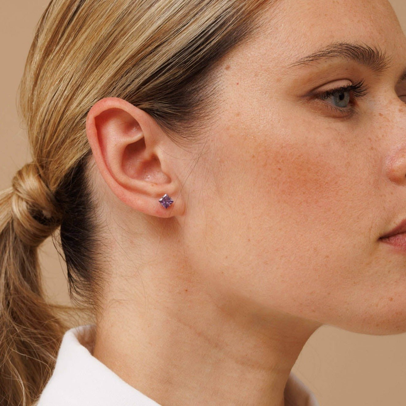 כל אחת צריכה שיהיה לה זוג עגילי זרקון סגול מרובעים קלאסיים.