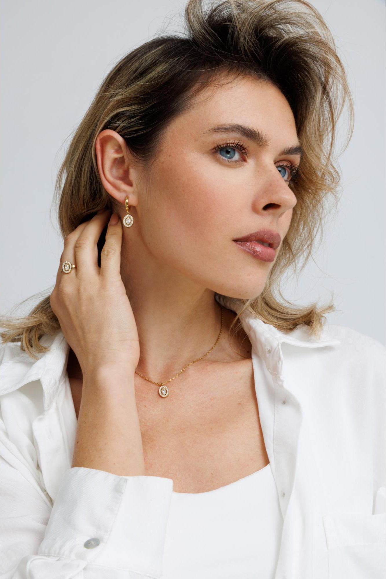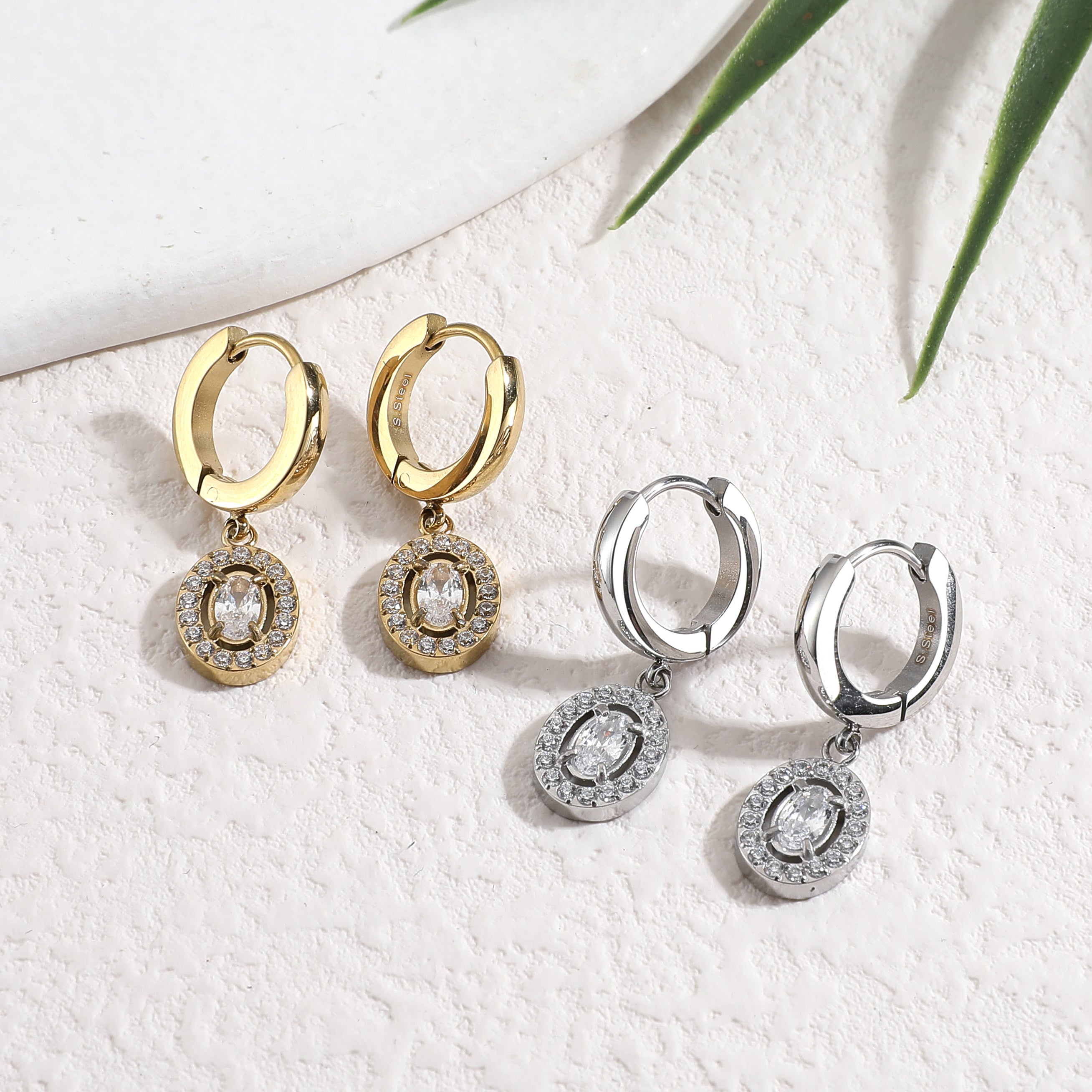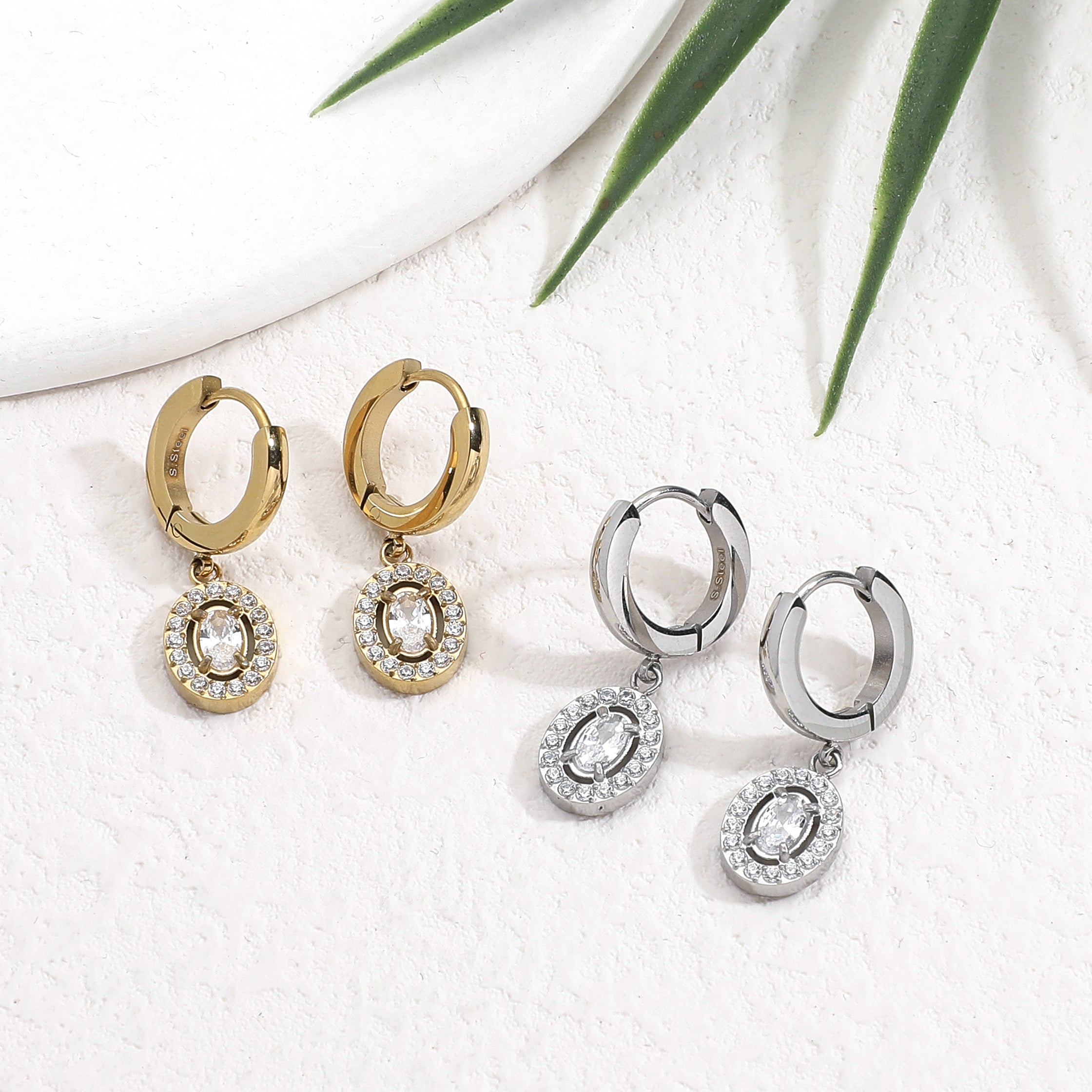 עגילי חישוק אליפס דיימון הם עגילי חישוק בשילוב זרקונים משובצים עדינים הכי קלאסיים שיש.
