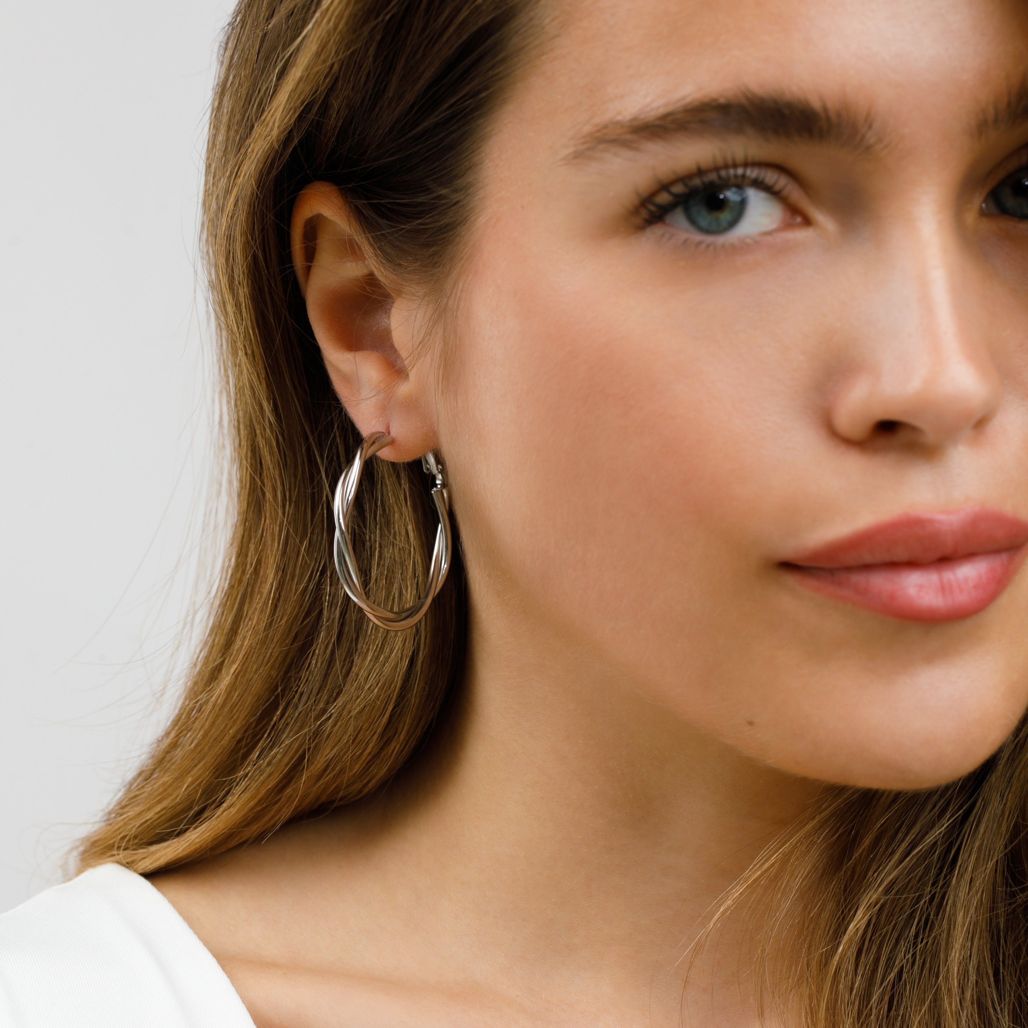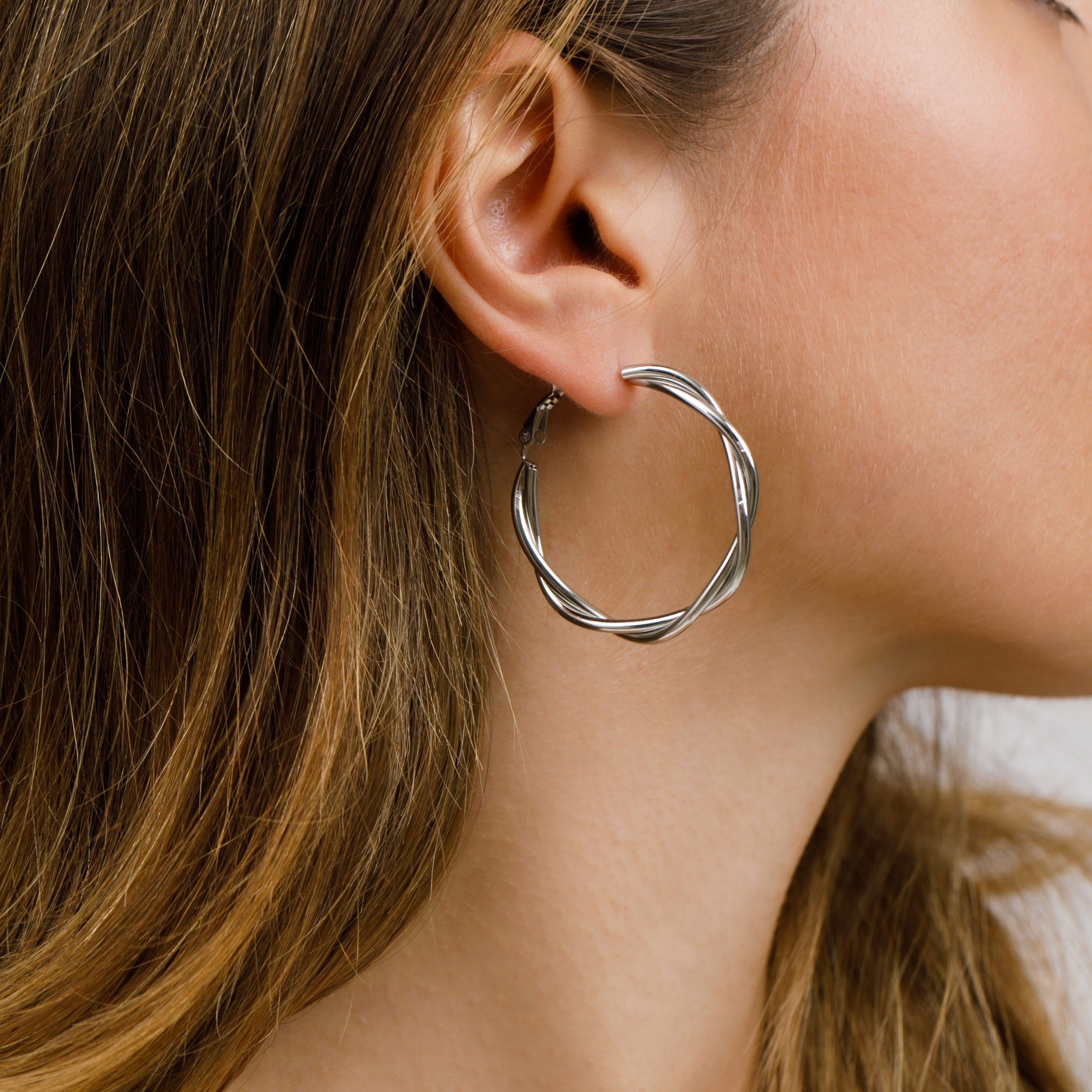 עגילי חישוק גרנדי הם עגילי חישוק גדולים עם מעיין דוגמת ליפוף היסטרית.