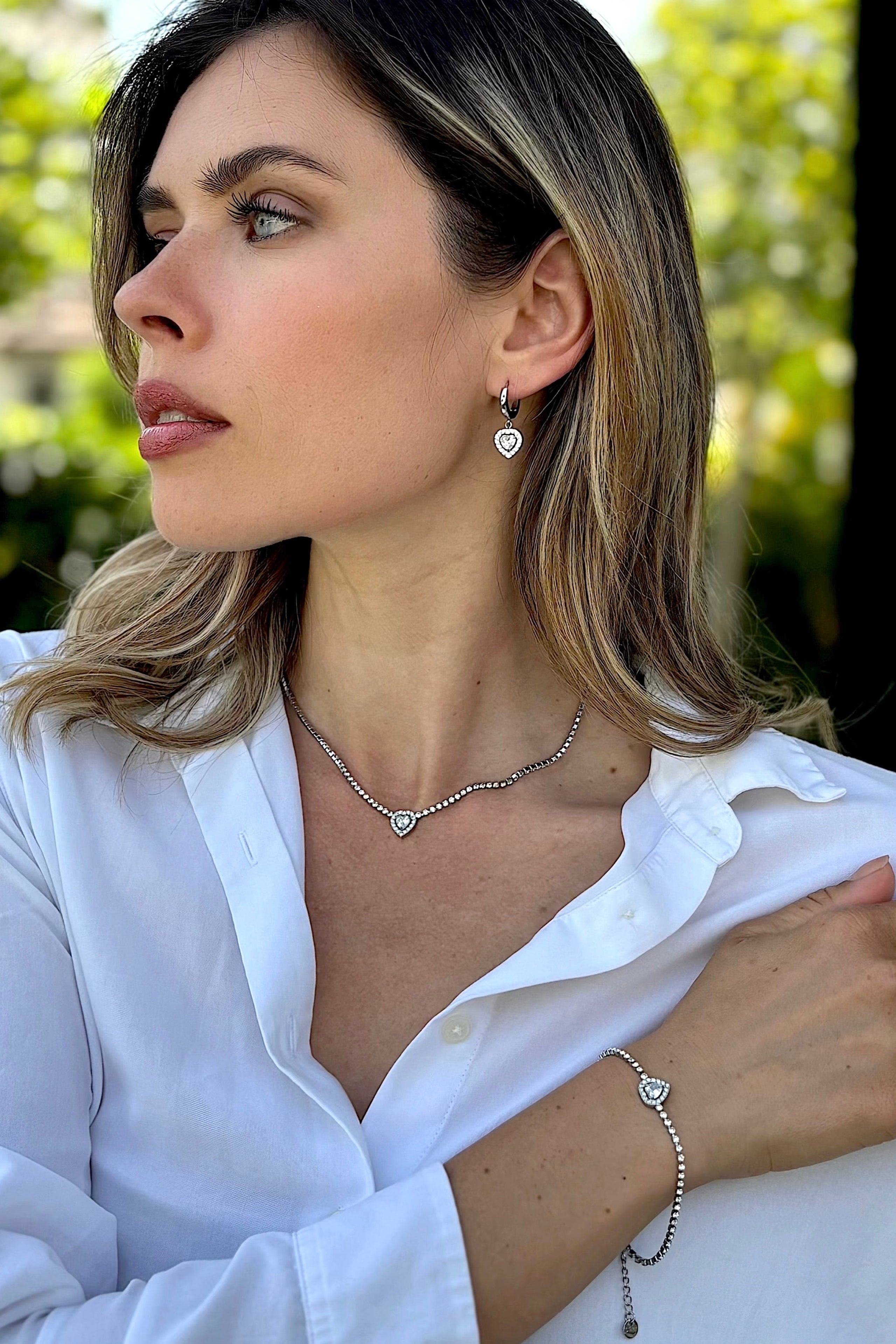 - תכשיטי Stainless Steel בגוון כסף עם אבנים מודבקות