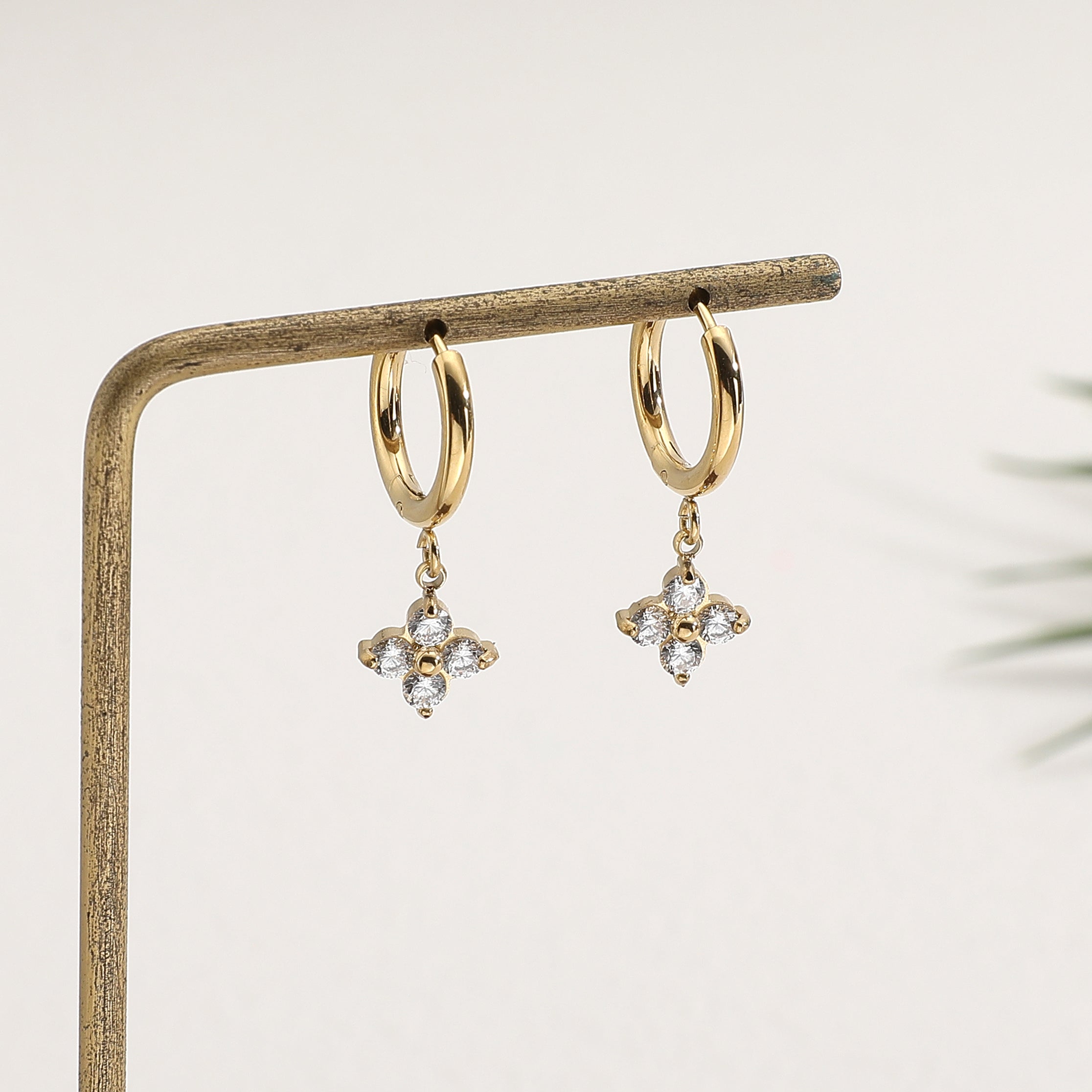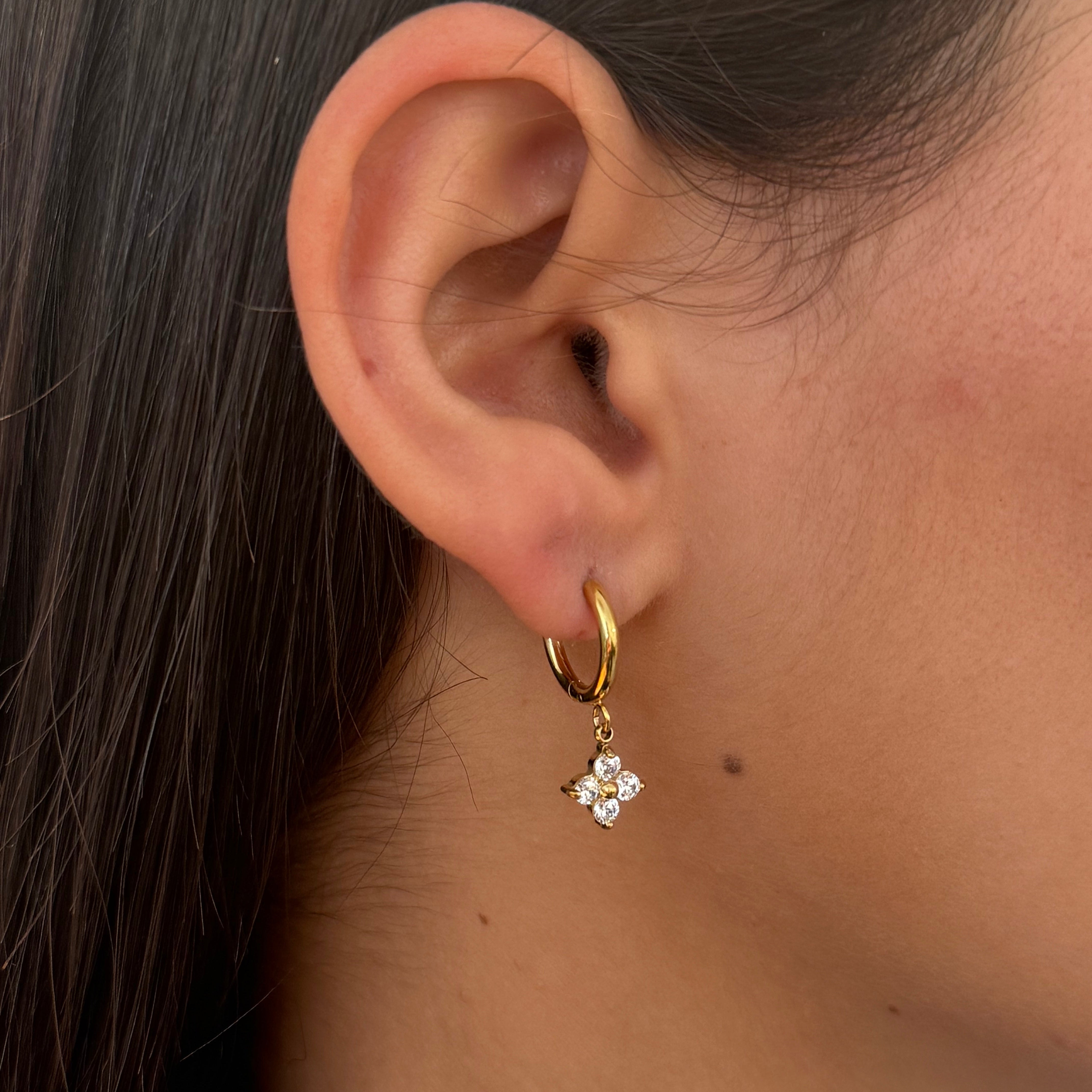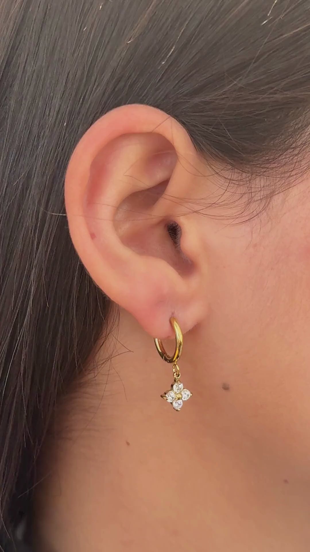 עגילי חישוק פלאוור בלינג הם עגילי חישוק עם תליון פרח בשילוב זרקונים הכי עדין וקלאסי שיש.