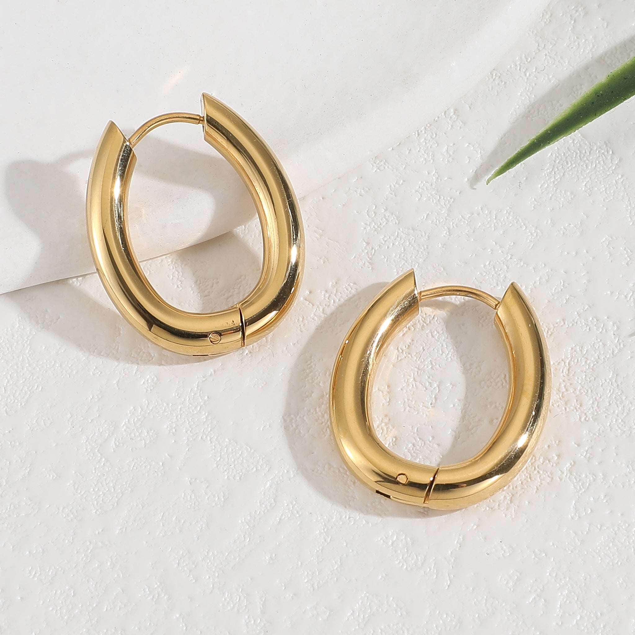 עגילי חישוק עבים קלאסיים בצורת אליפסה שמתאימים ליום יום:)