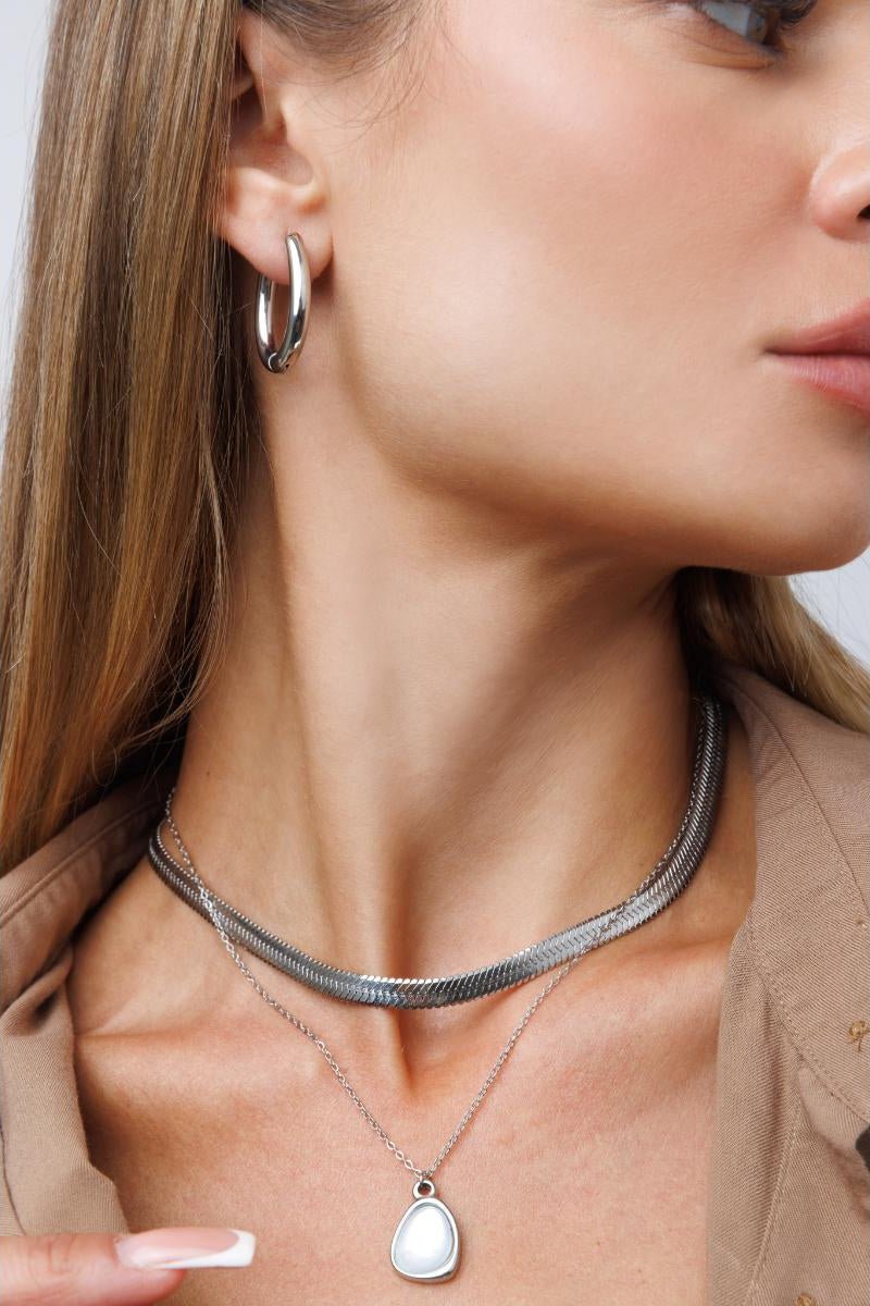 - תכשיטי Stainless Steel בגוון כסף עם אבנים מודבקות