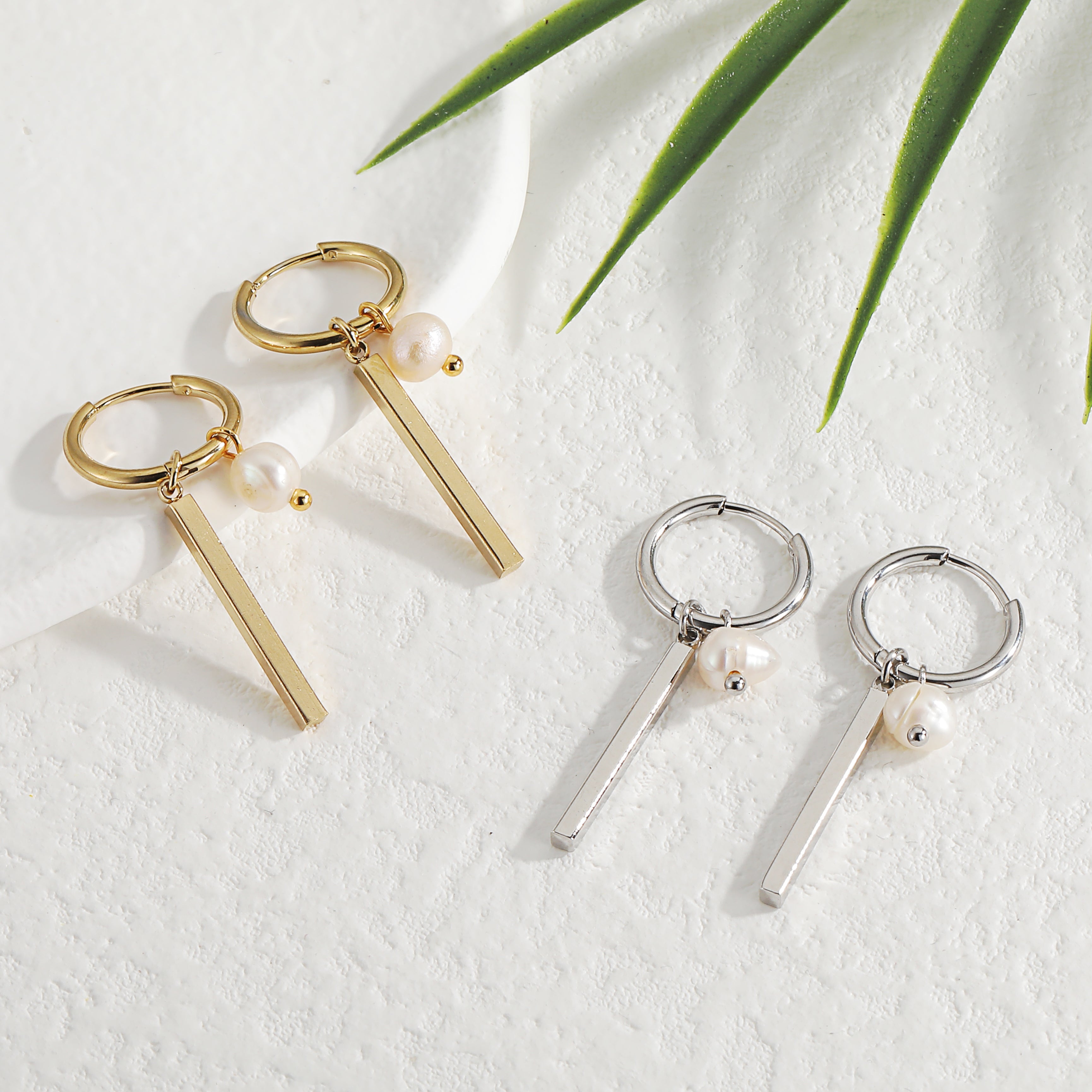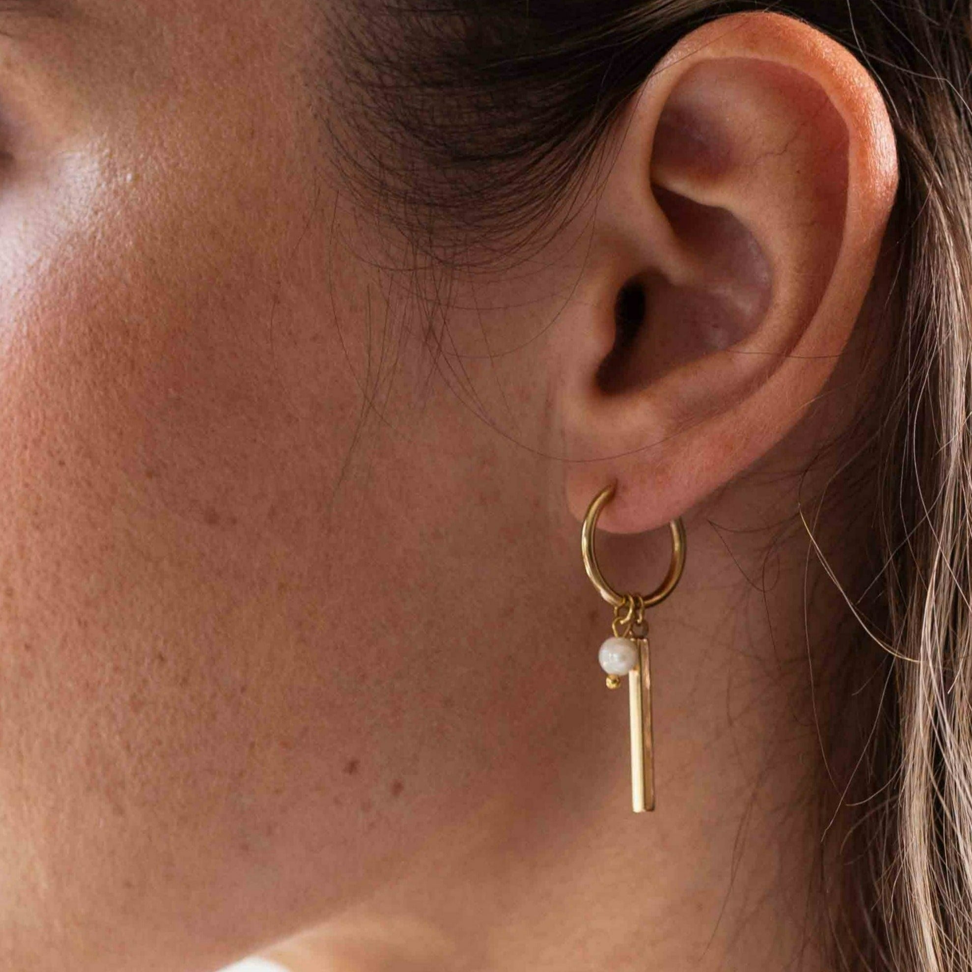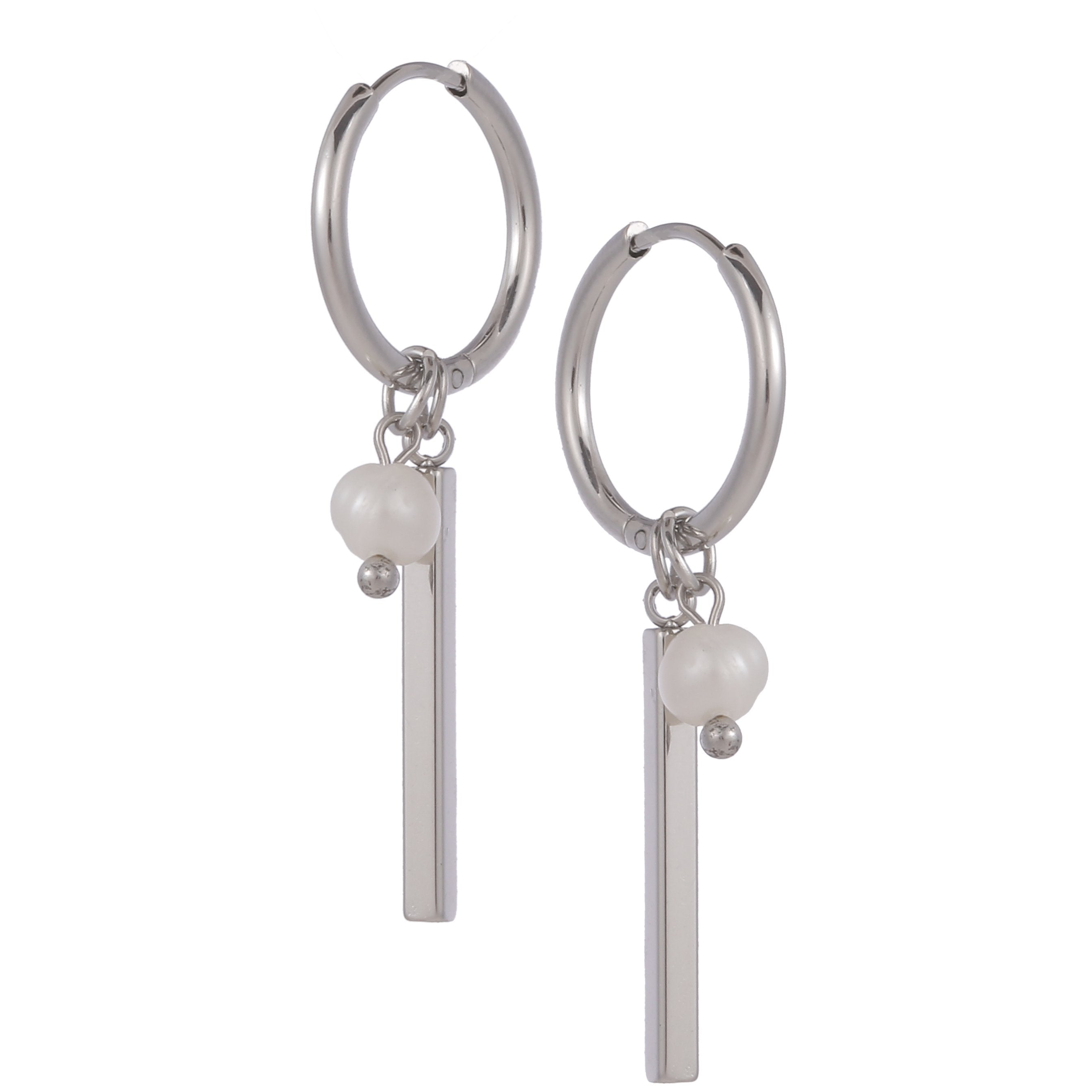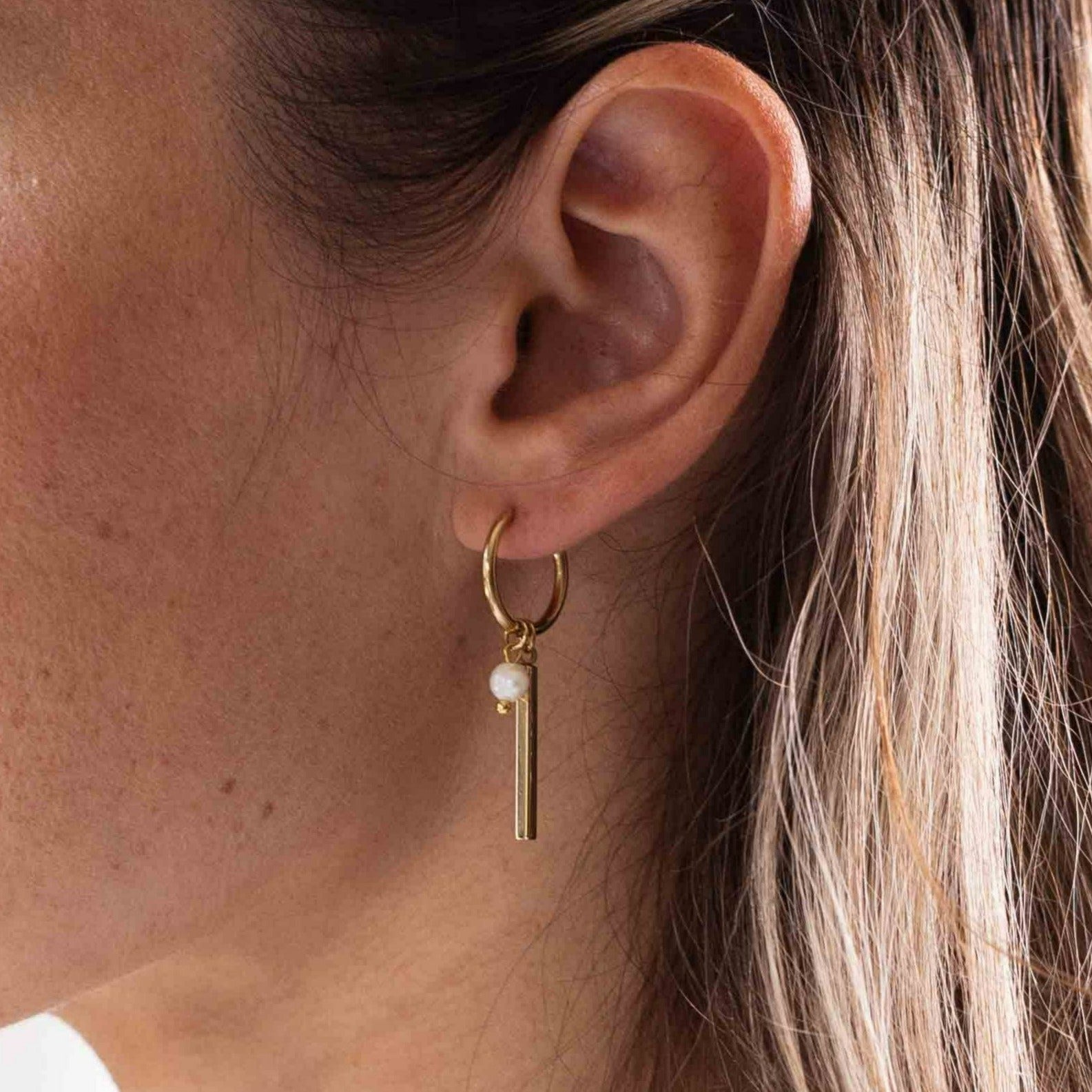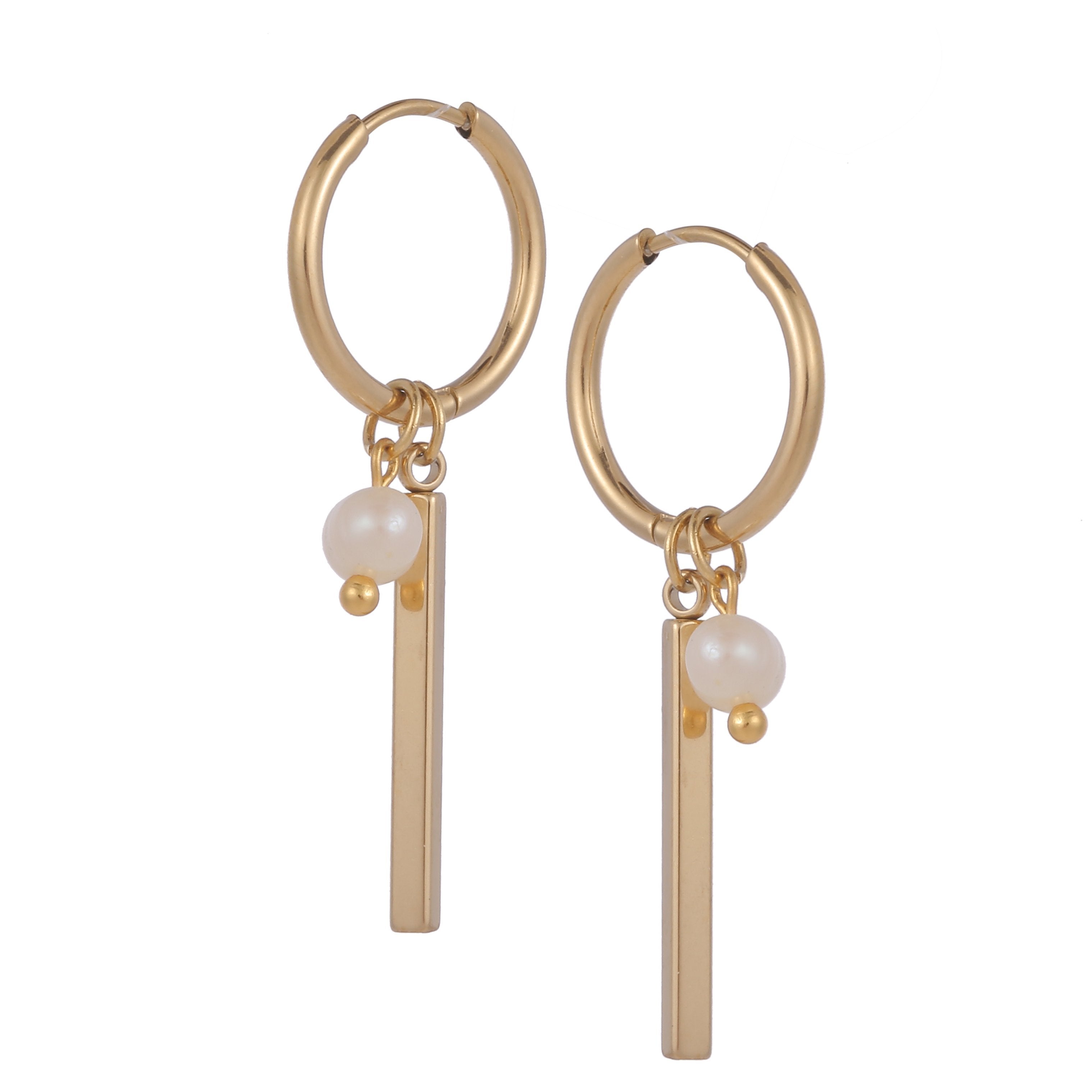 עגילי חישוק עם אלמנט דמוי פנינה ופס שמוסיפים מלא שיק לעגיל.