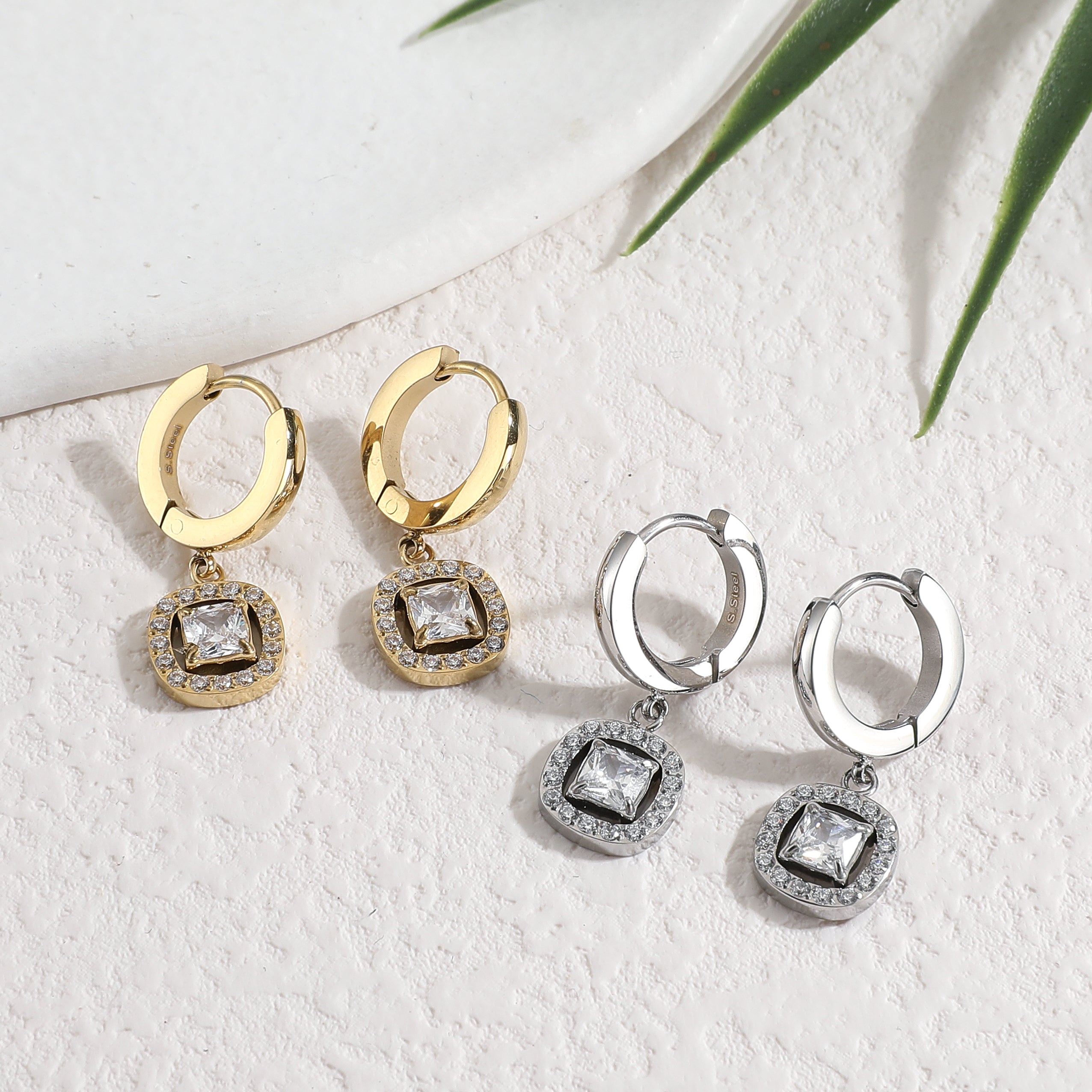 עגילי חישוק ריבוע דיימון