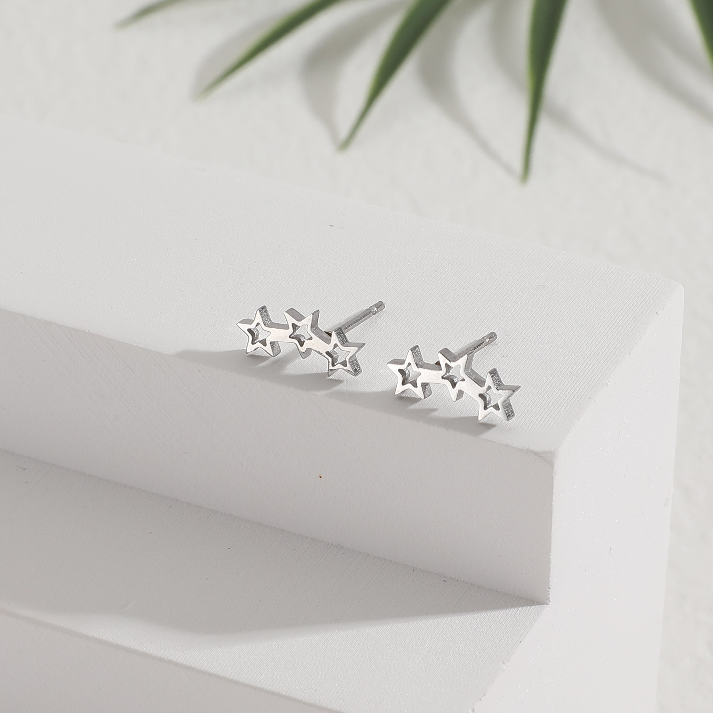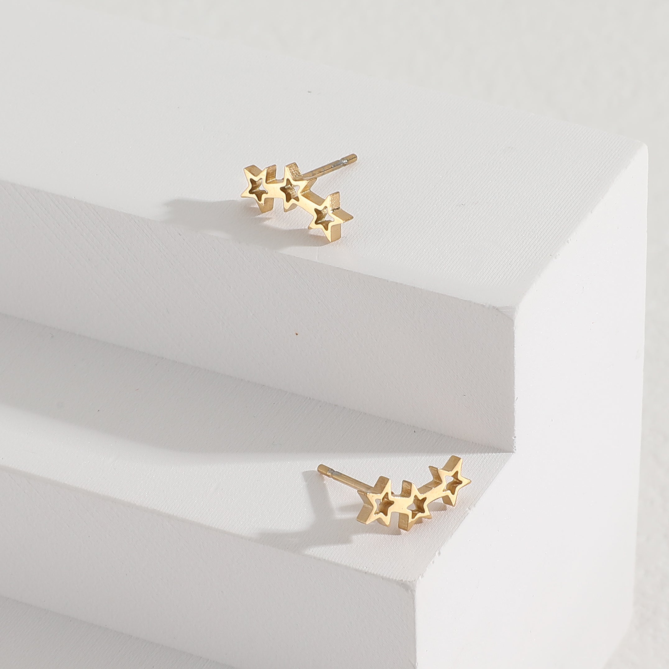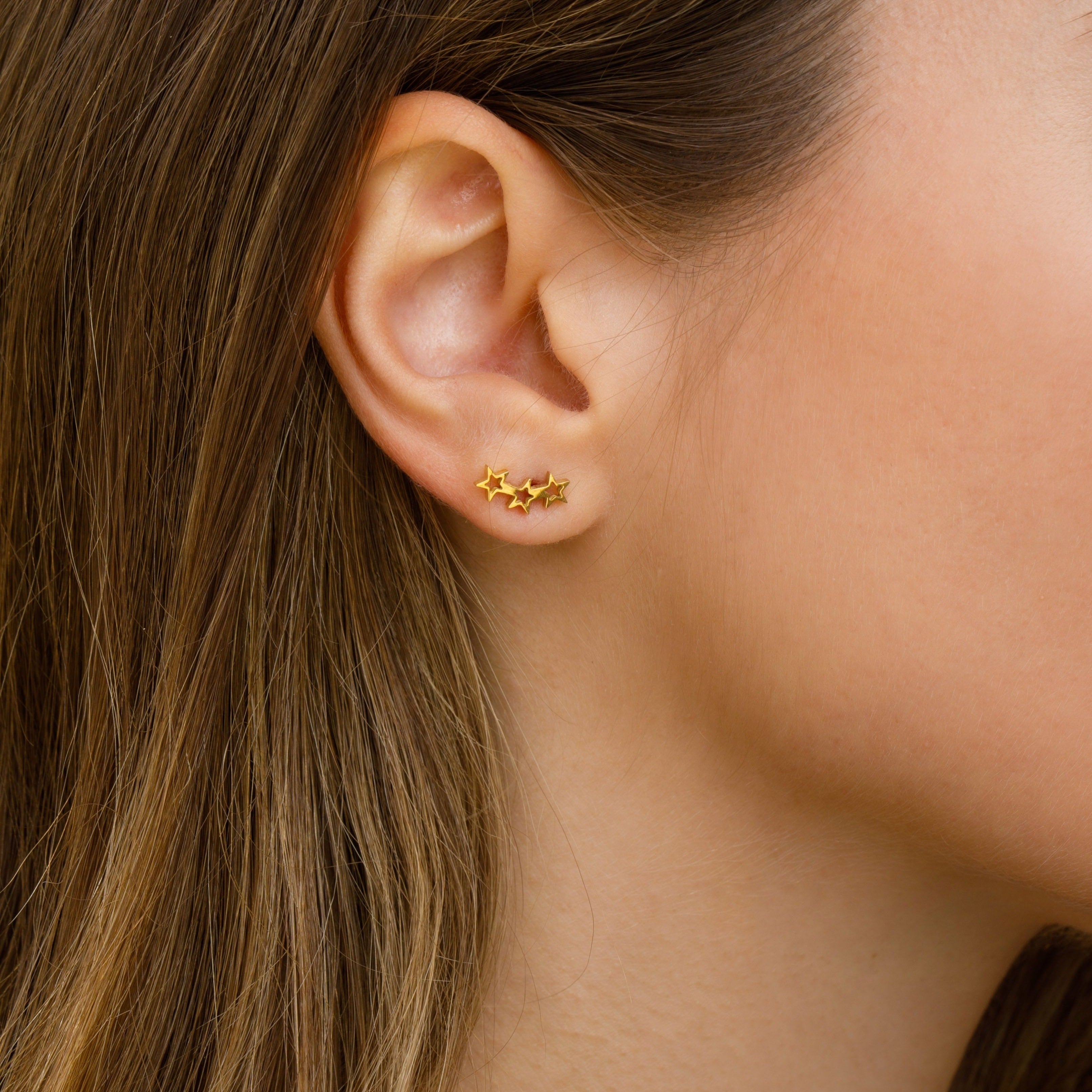 עגילי טייני כוכבים הם עגילים צמודים ומקסימים בדוגמת 3 כוכבים חלולים עדינים.