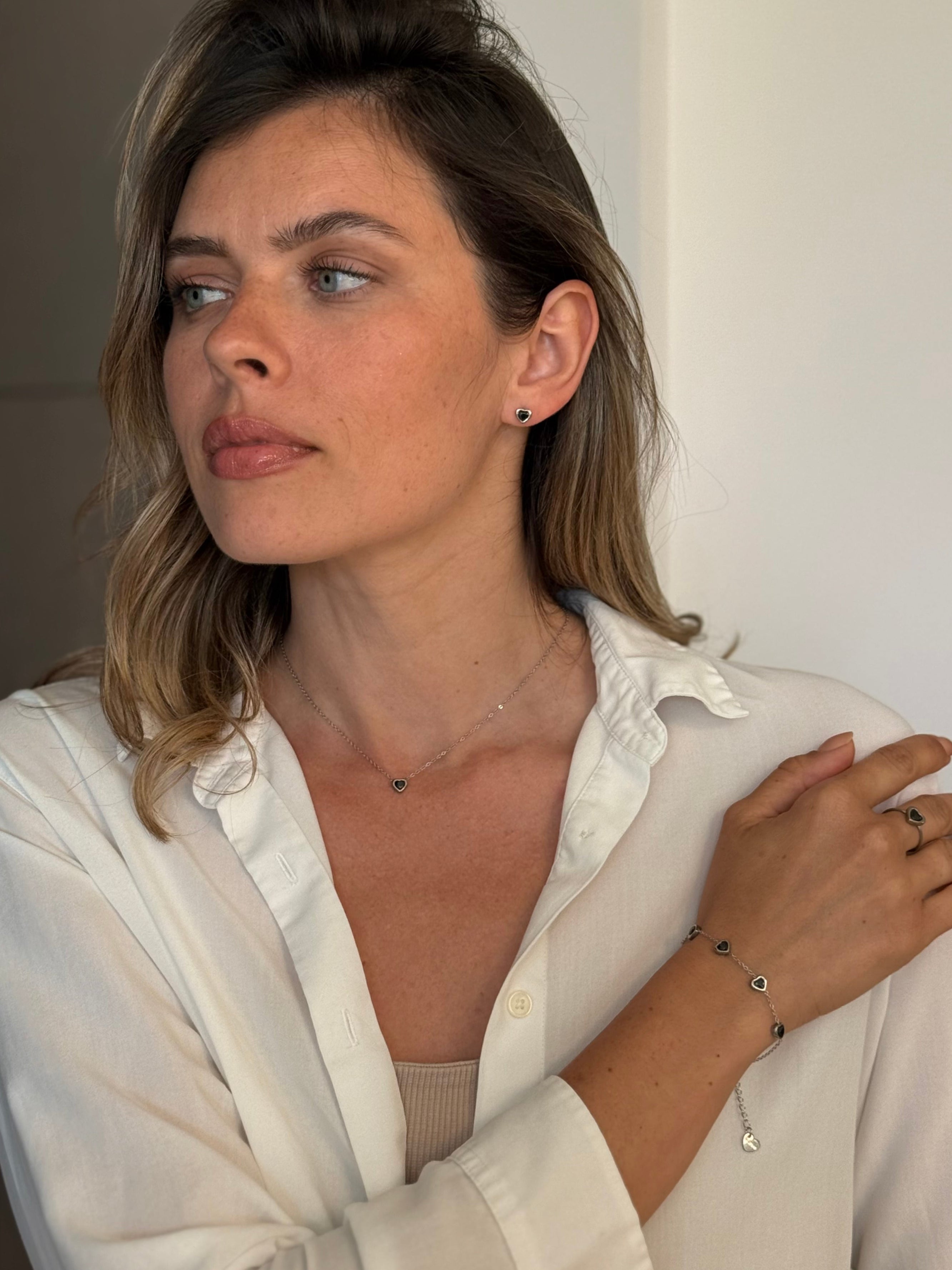 עגילי טייני לב בלינג שחור הם עגילי לב צמודים בשיבוץ זרקון שחור הכי עדינים ויפים שיש.