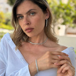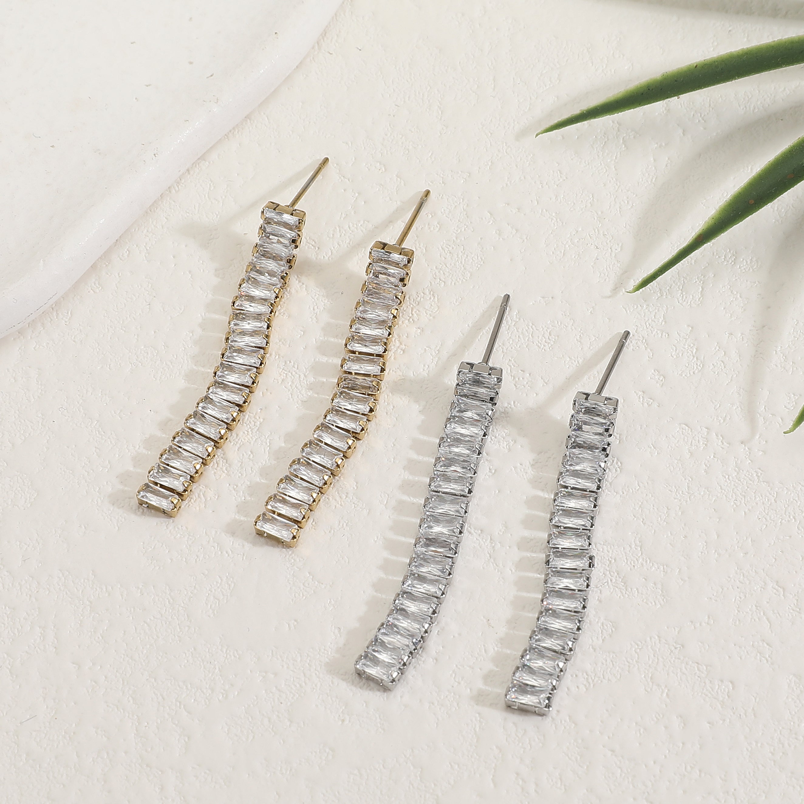 עגילי טניס אלכסה סלים הם עגילי טניס נופלים משובצים זרקונים בצורה מלבנית עם נוכחות מהפנטת.
