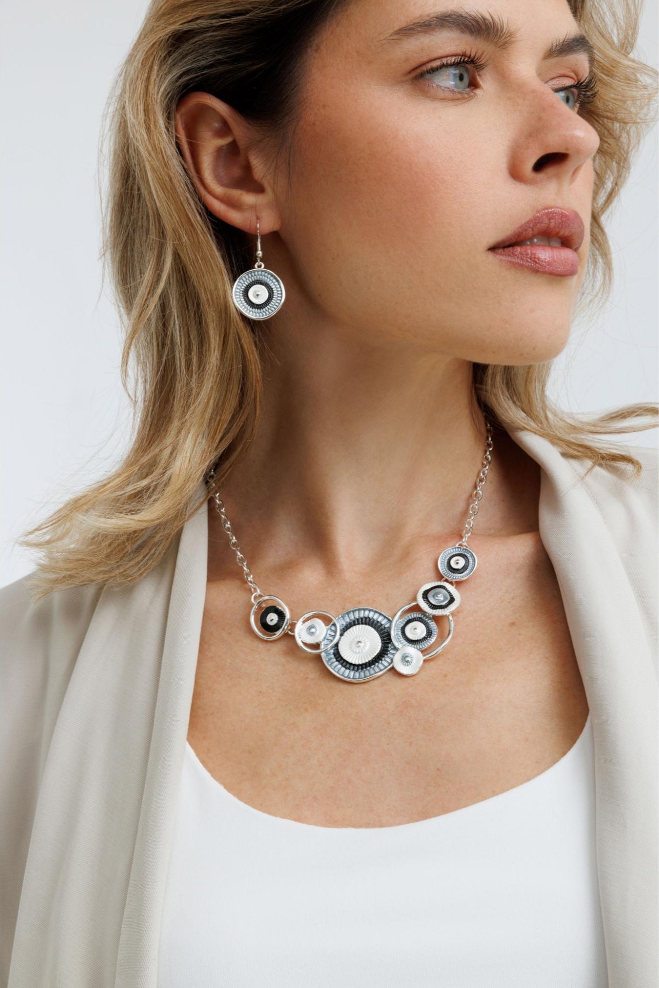 בעגילים אלמנטים שונים בצורות עגולות שונות היוצרים שילוב מעניין וייחודי בריקוע וינטאג'י.