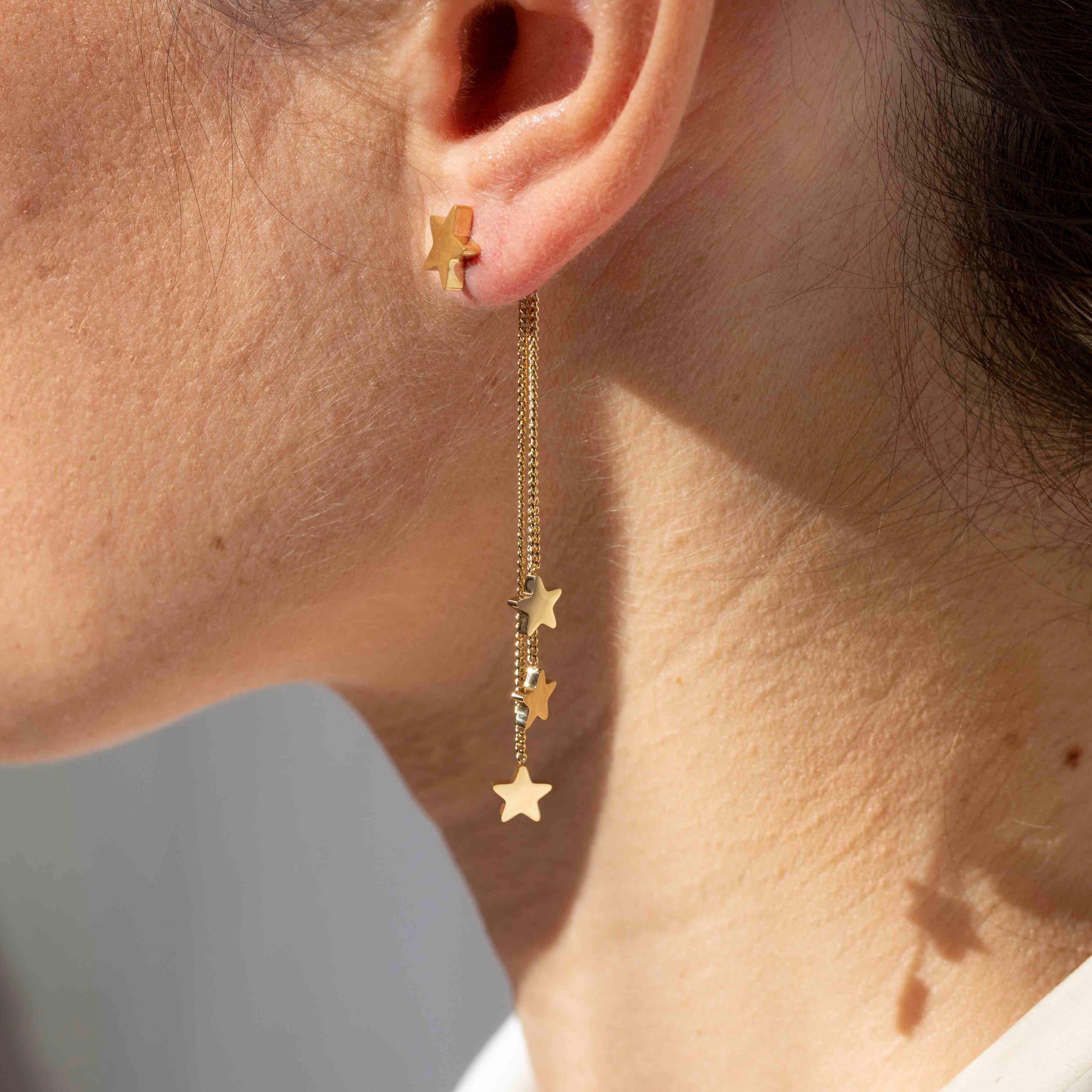 עגילי כוכב נופלים הם הסטייל בהתגלמותו- שילוב הורס בין עגיל כוכב צמוד לבין כוכבים נופלים המחוברים לסוגר של העגיל.