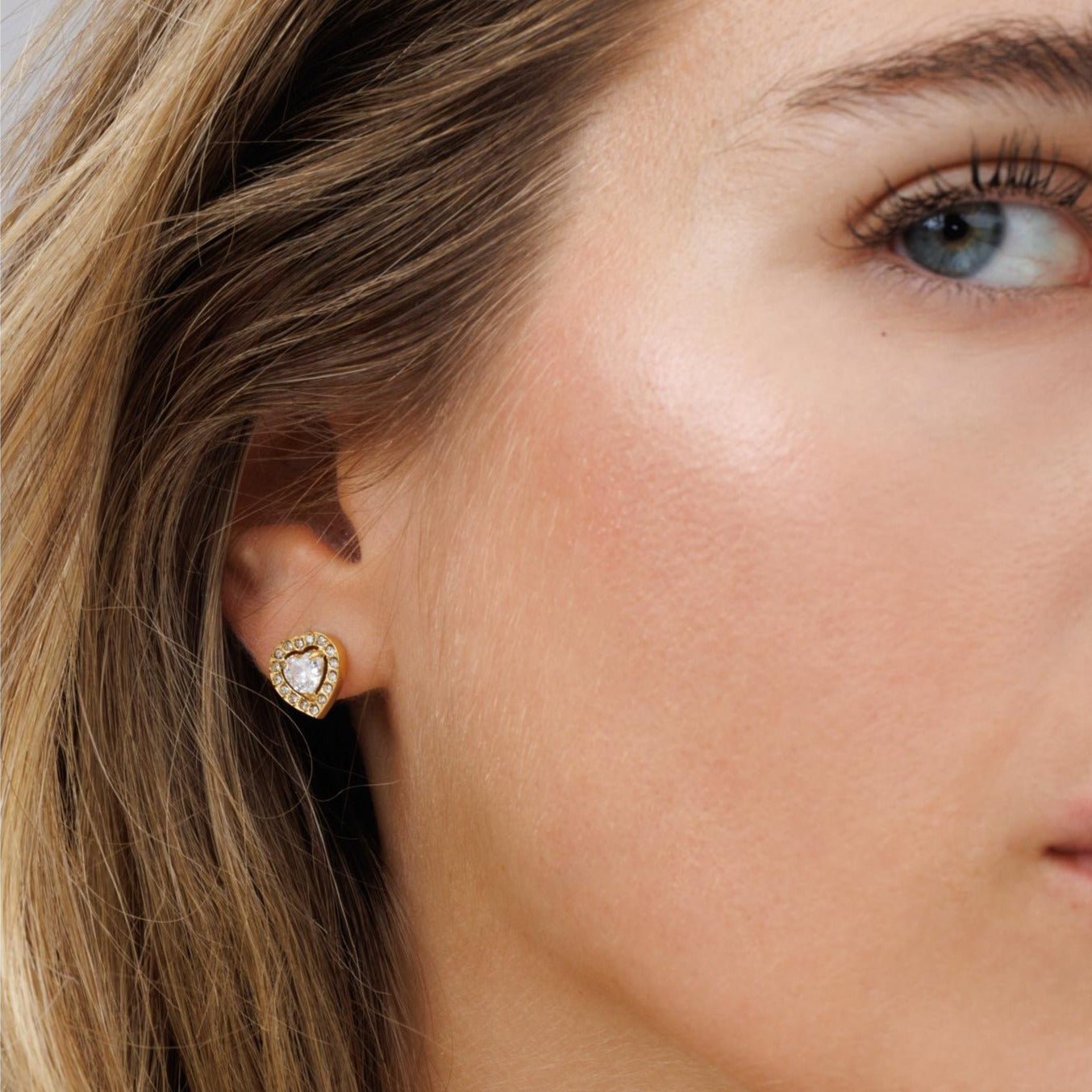 עגילי לב דיימון הם עגילי זרקונים משובצים עדינים הכי קלאסיים שיש.