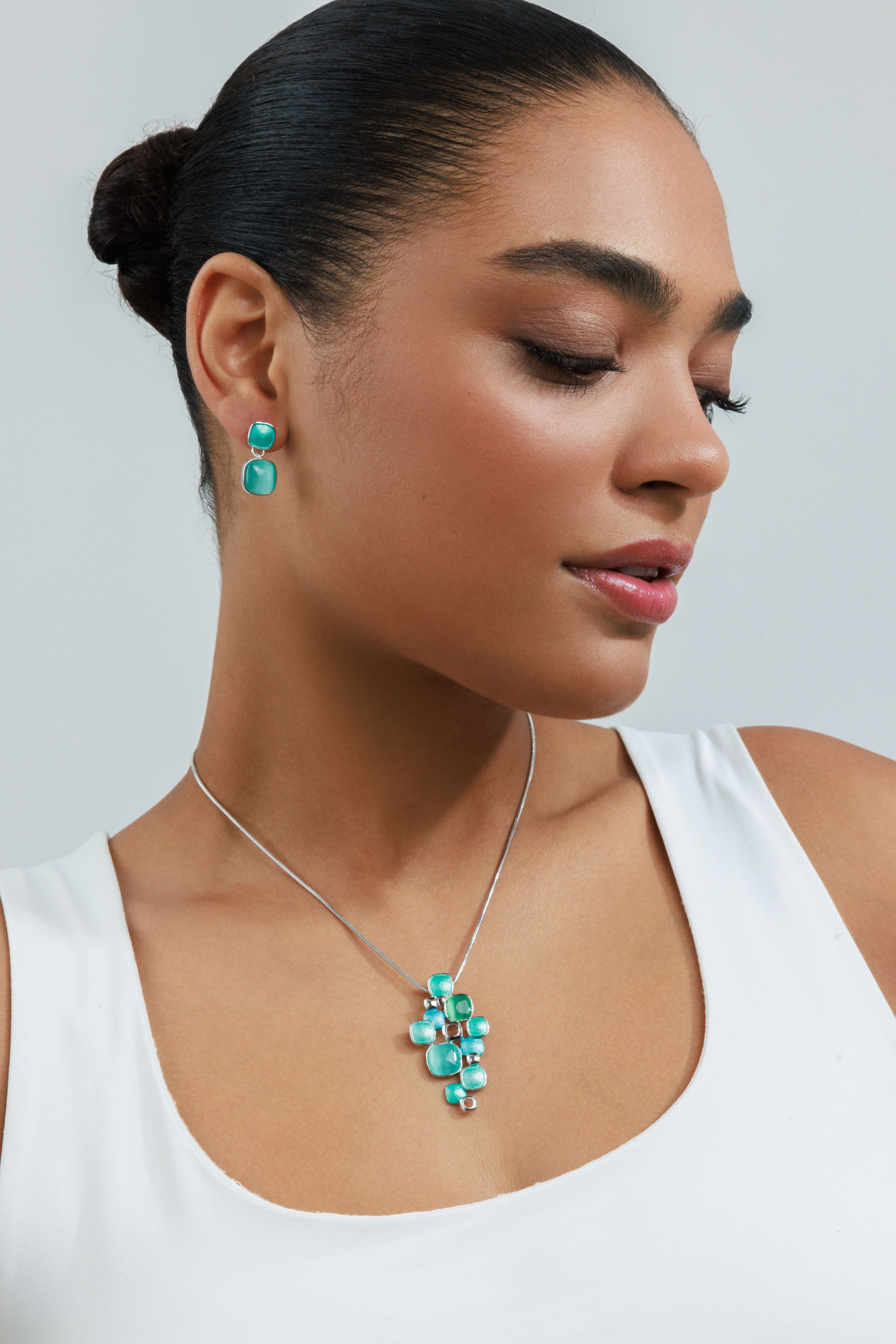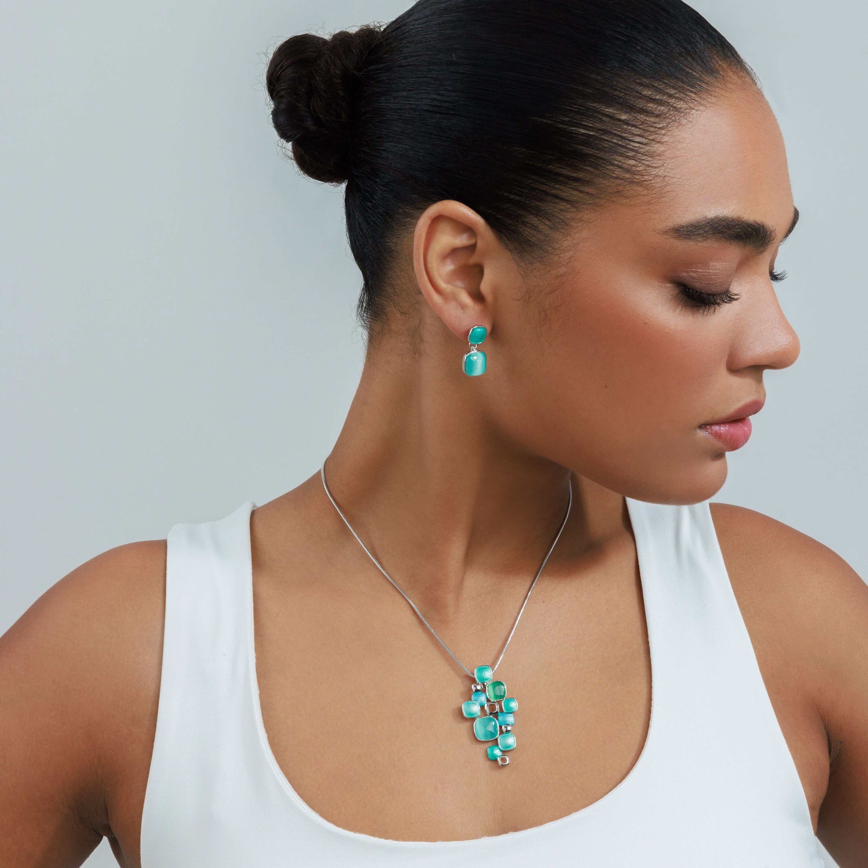 עגילי ליאן הם עגילים נופלים מושלמים עם תליון מרובע בשילוב אלמנט טורקיז הורס.