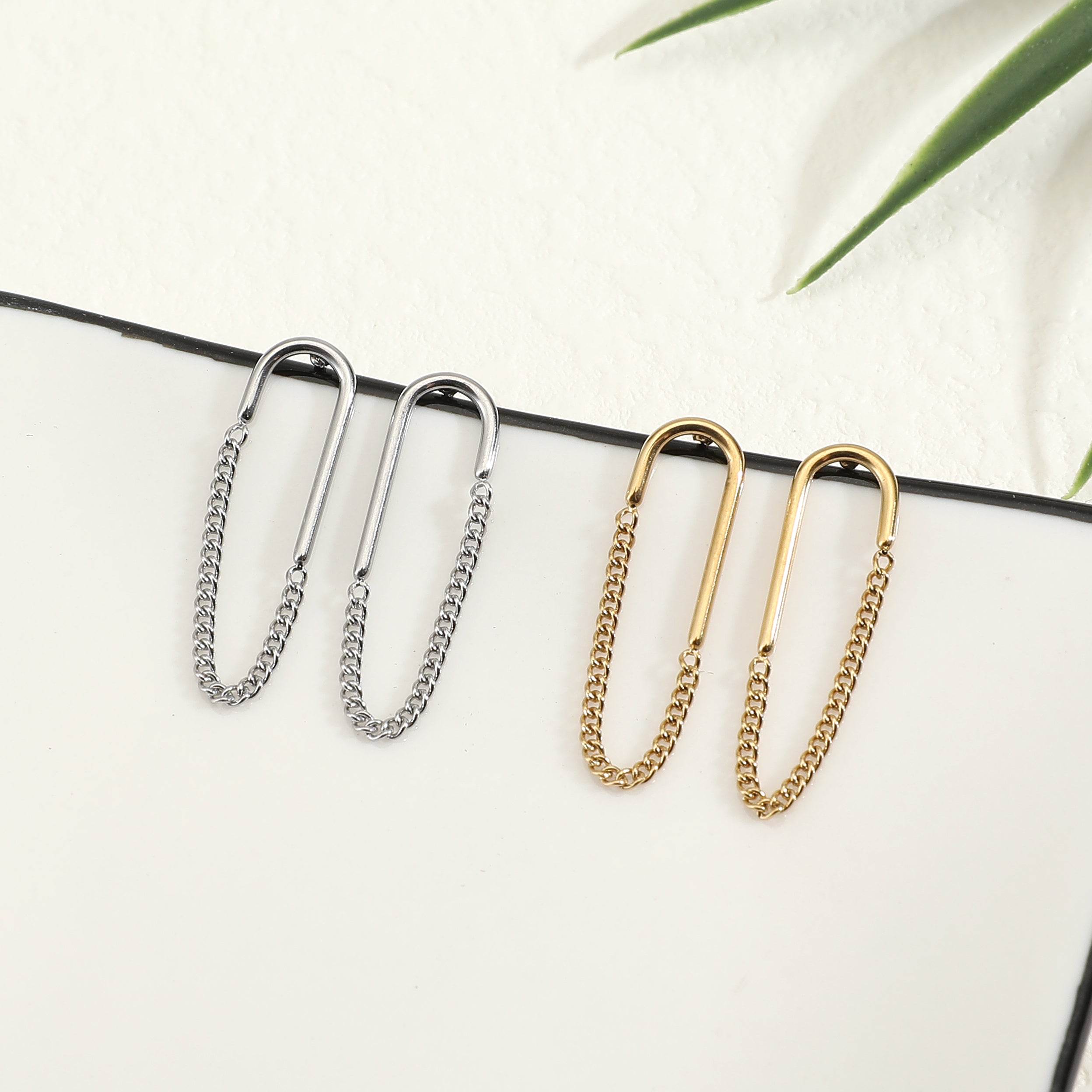 העגיל מורכב מחצי אליפסה מבריקה ושרשרת המתחברת לקצוותיה.