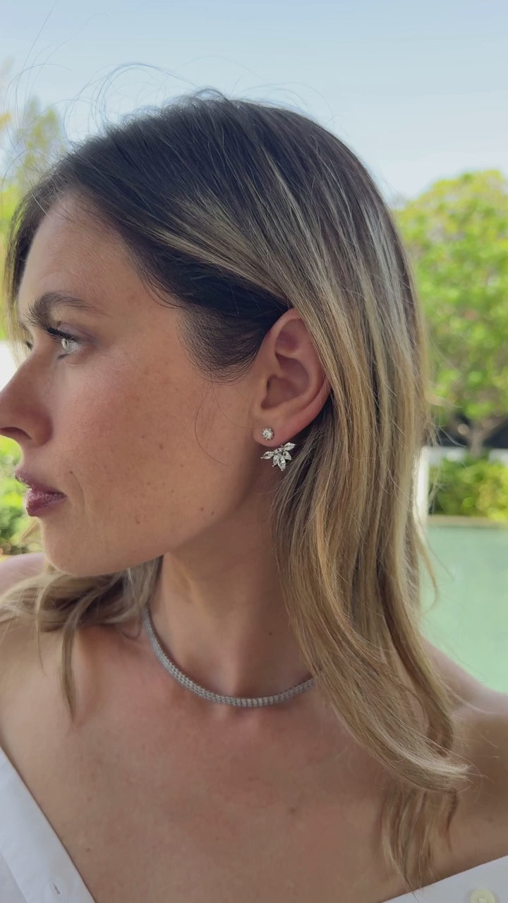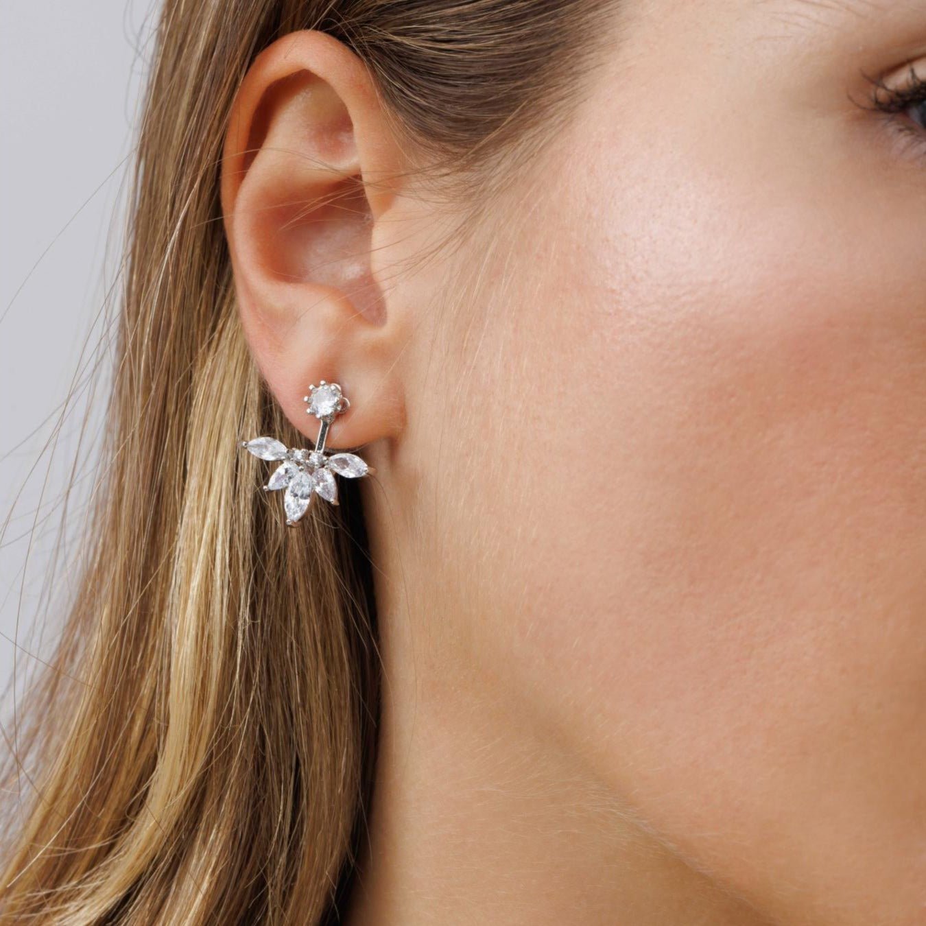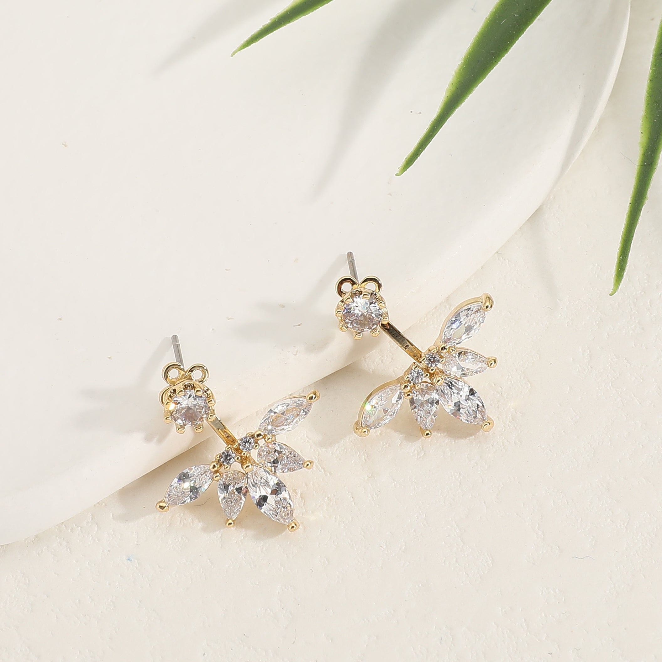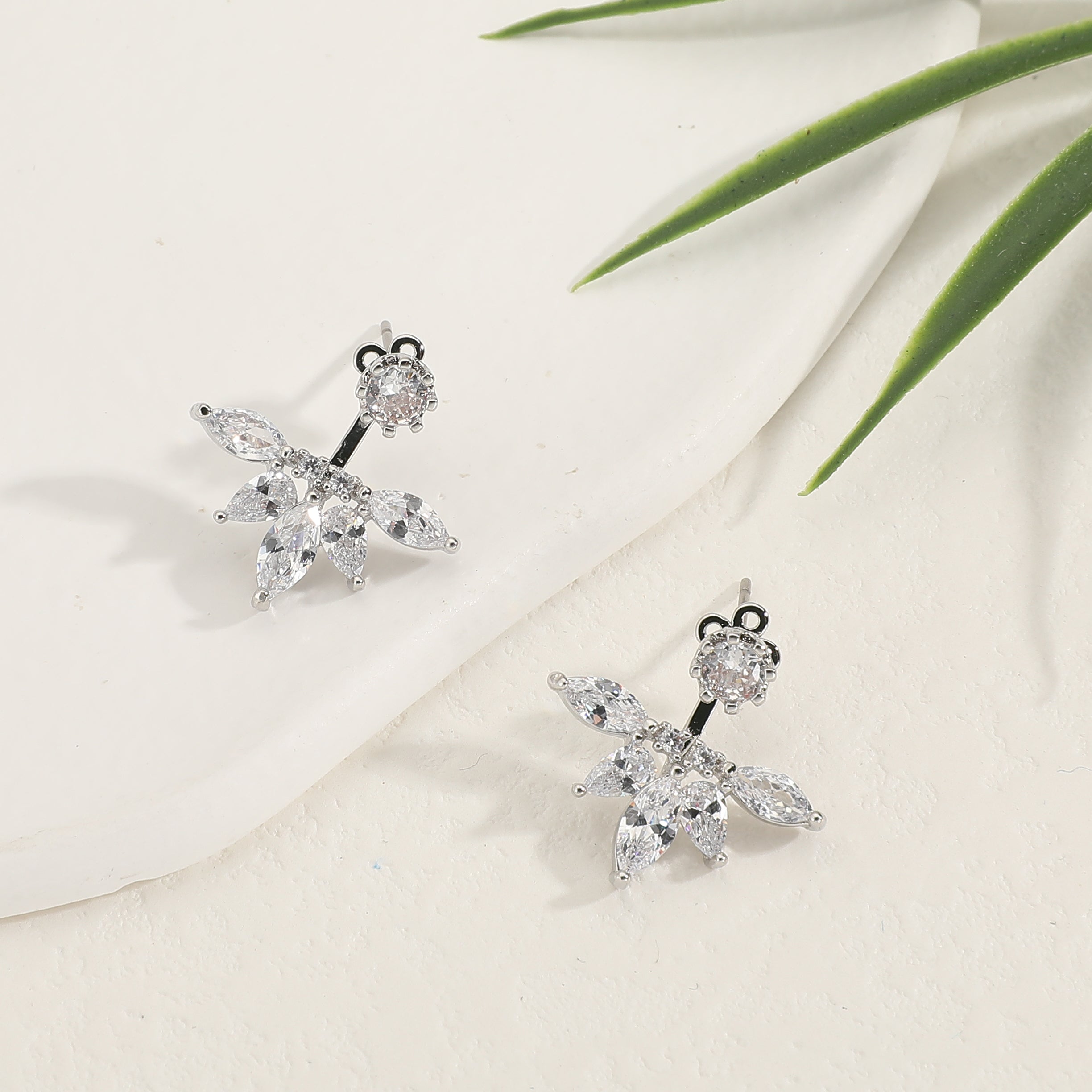 עגיל בעיצוב וינטג'י עם זרקון קדמי ומניפה אחורית מלאת סטייל.