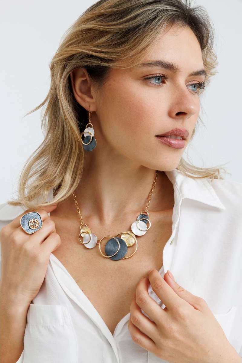 עגילי סטארק גריי הם עגילי תלייה בשילוב עיגולים ייחודיים מלאי נוכחות וסטייל.
