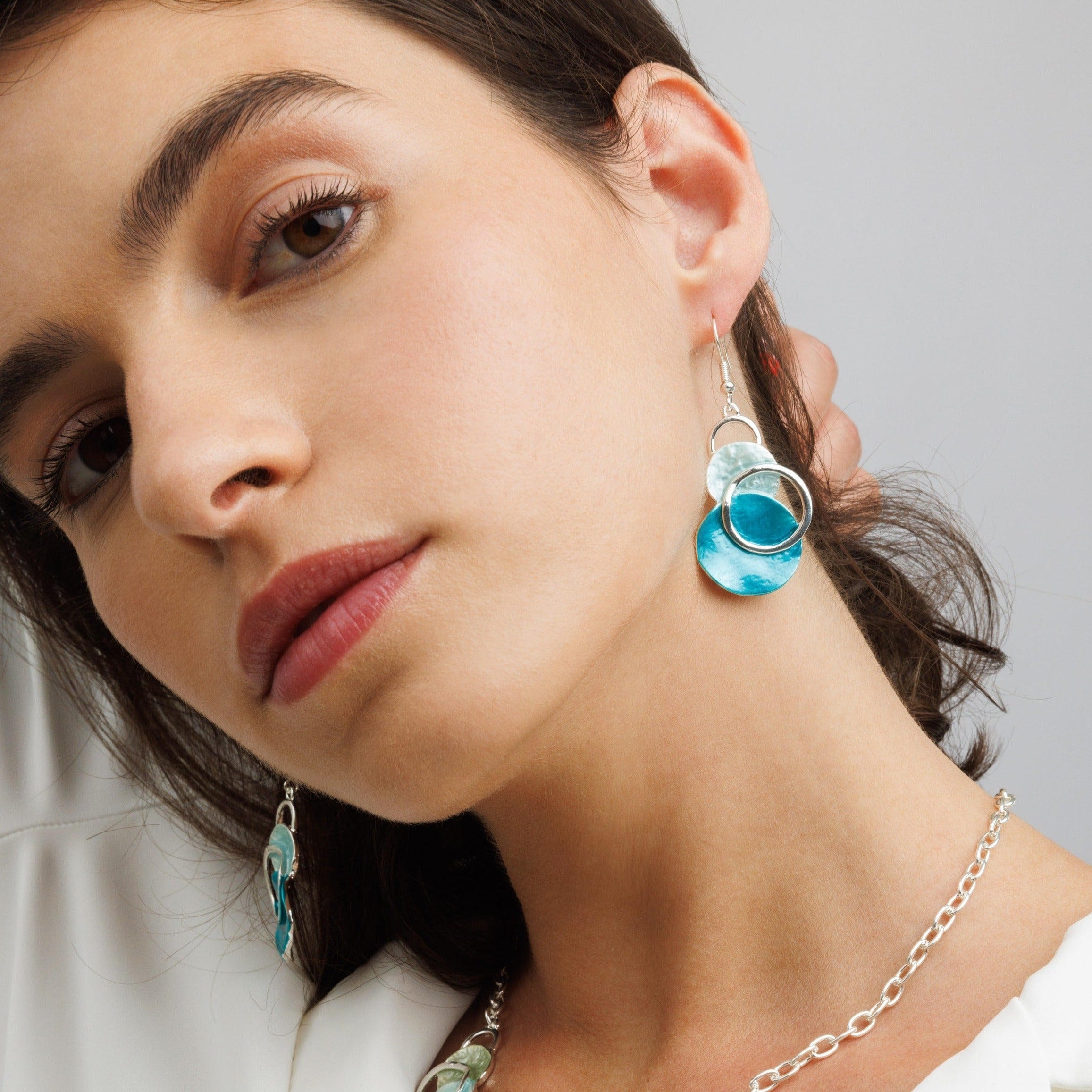 עגילי סטארק טורקיז הם עגילי תלייה בשילוב עיגולים ייחודיים מלאי נוכחות וסטייל.