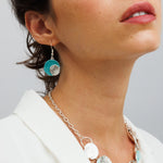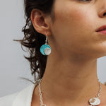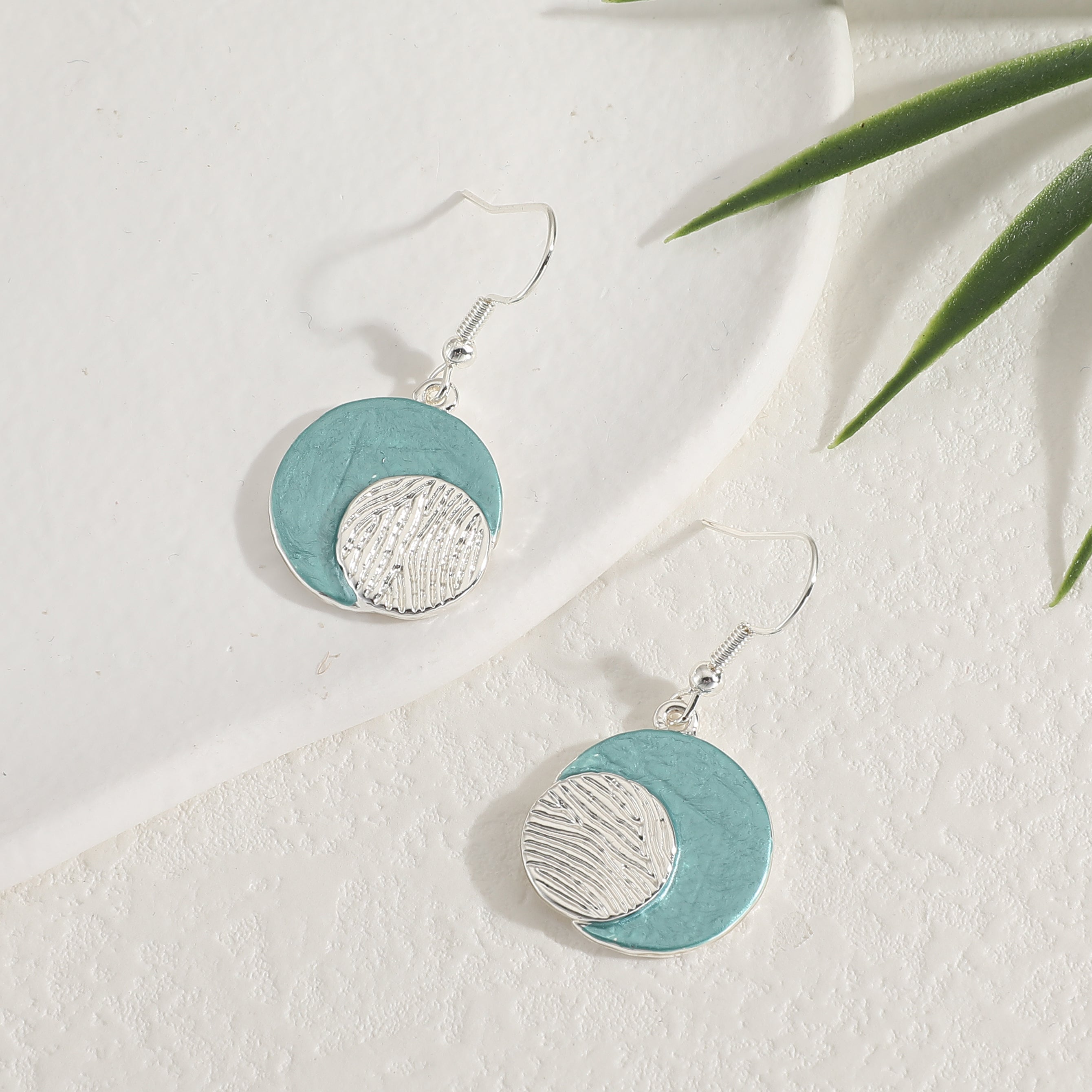 עגילי סטן הם עגילי תלייה עם אלמנט עיגול טורקיז רקוע ומבריק.