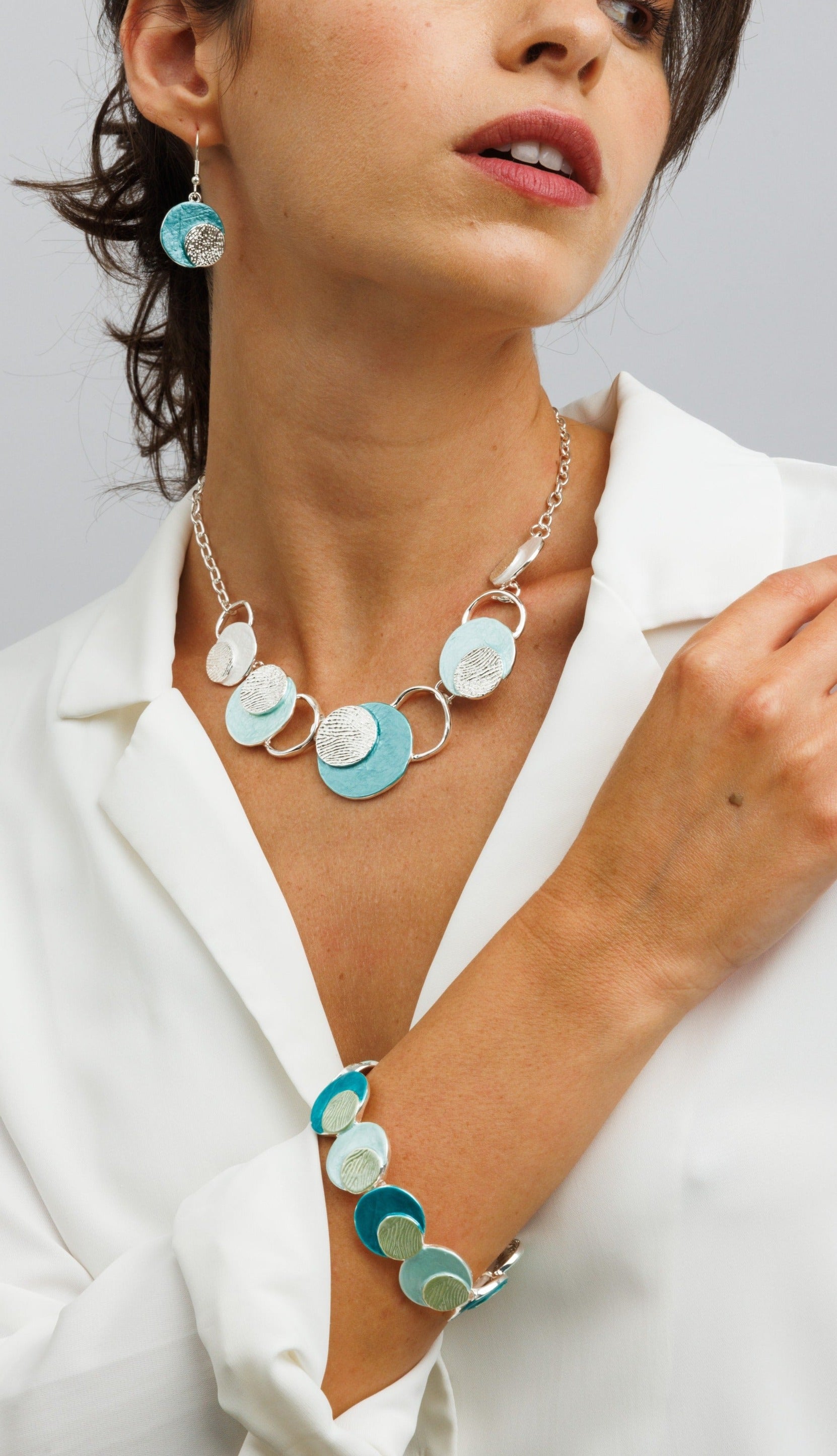 תכשיט זה הינו חלק מקולקציית התכשיטים בגוונים ייחודיים המתקבלים באמצעות צביעה בעבודת יד.