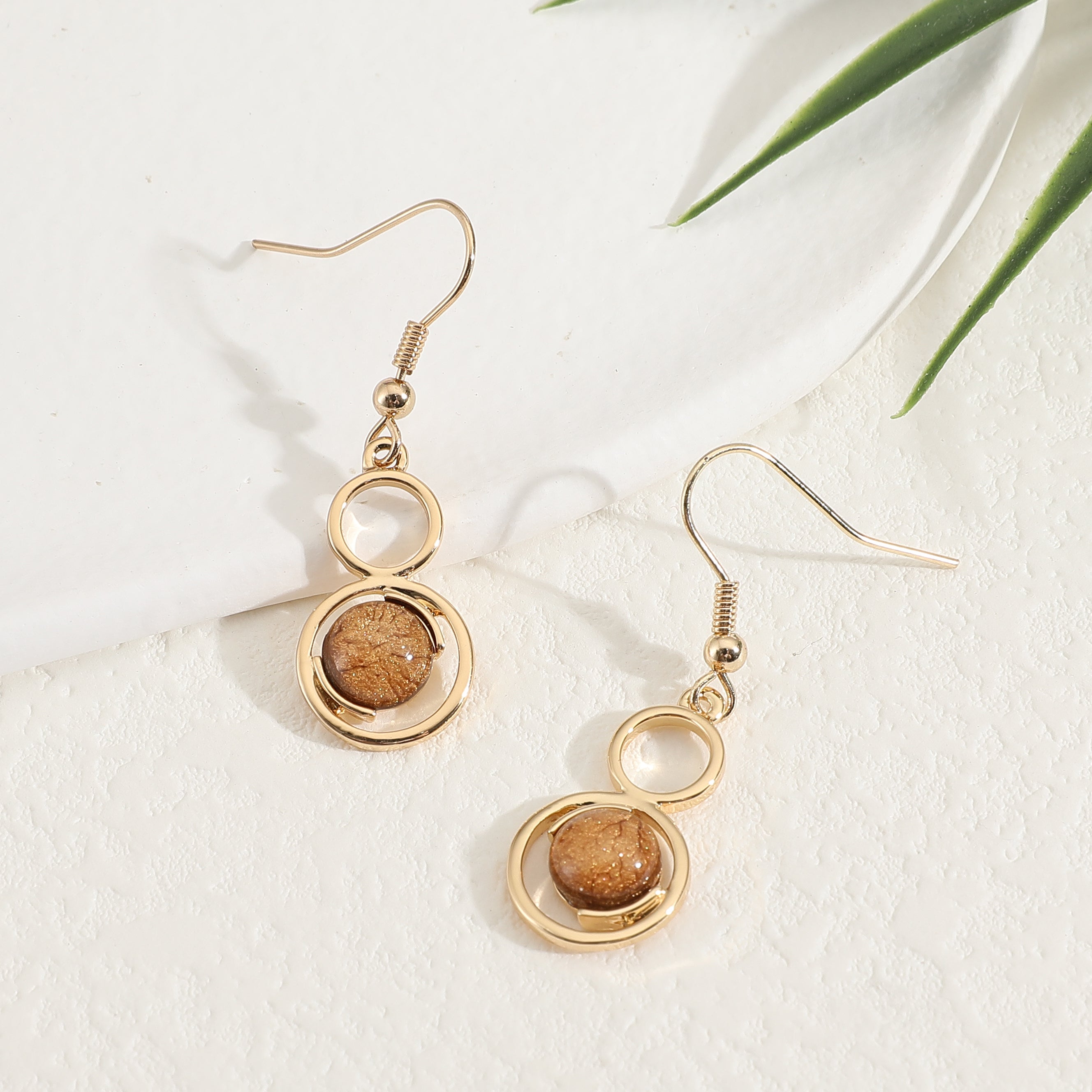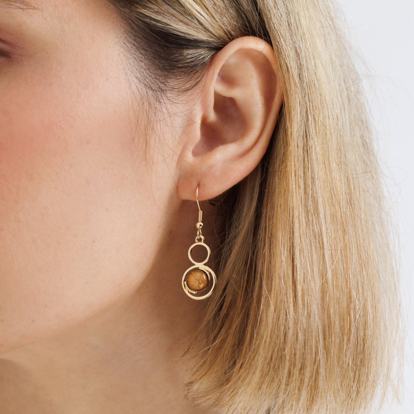 עגילי סייפיר גולד הם עגילי תלייה עם אלמנט עגול בגווני חום משגעים.