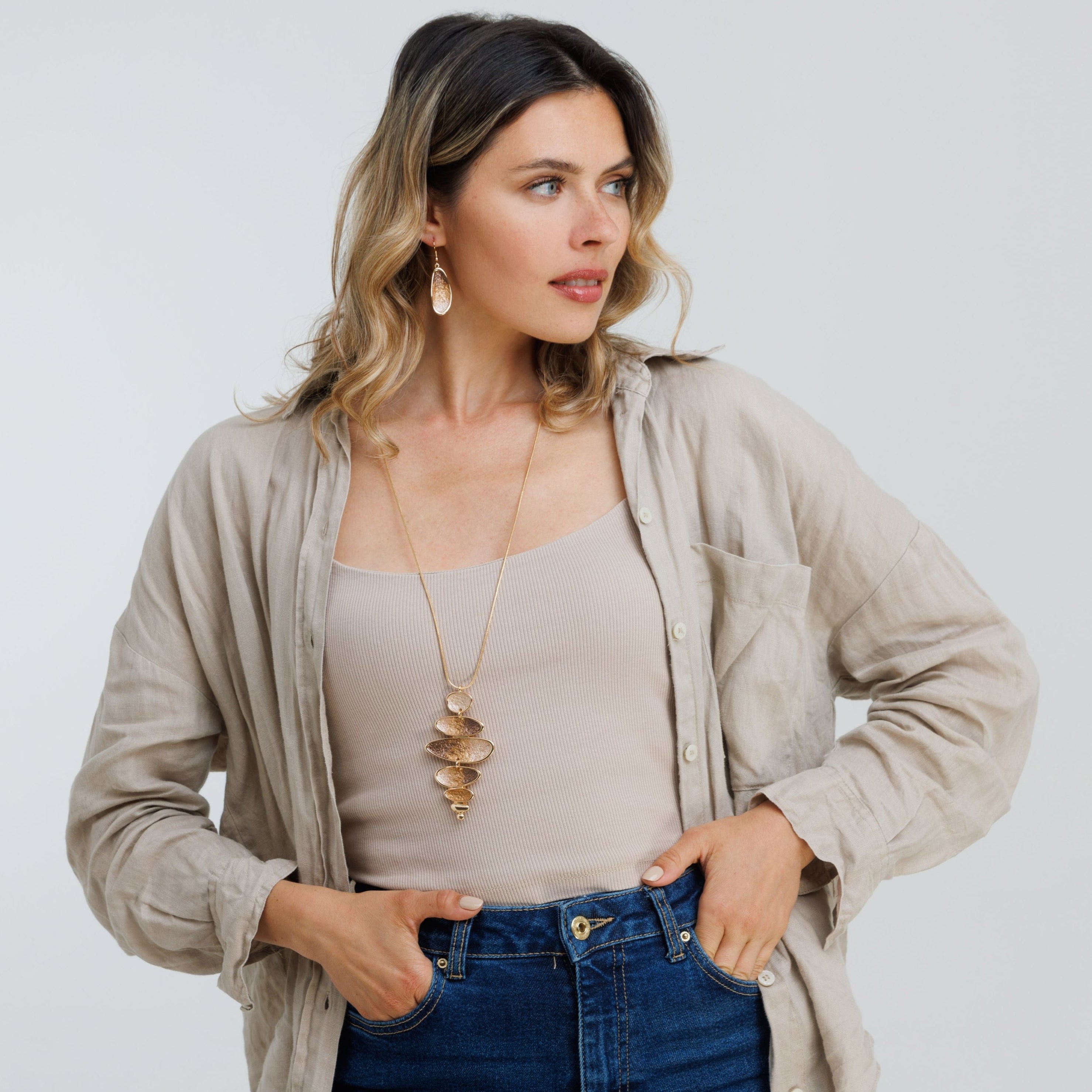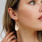 עגילי קירה הם עגילי תלייה עם תליון עגול ומעוצב בשילוב גווני חום שונים וריקוע סנדי חדשני.