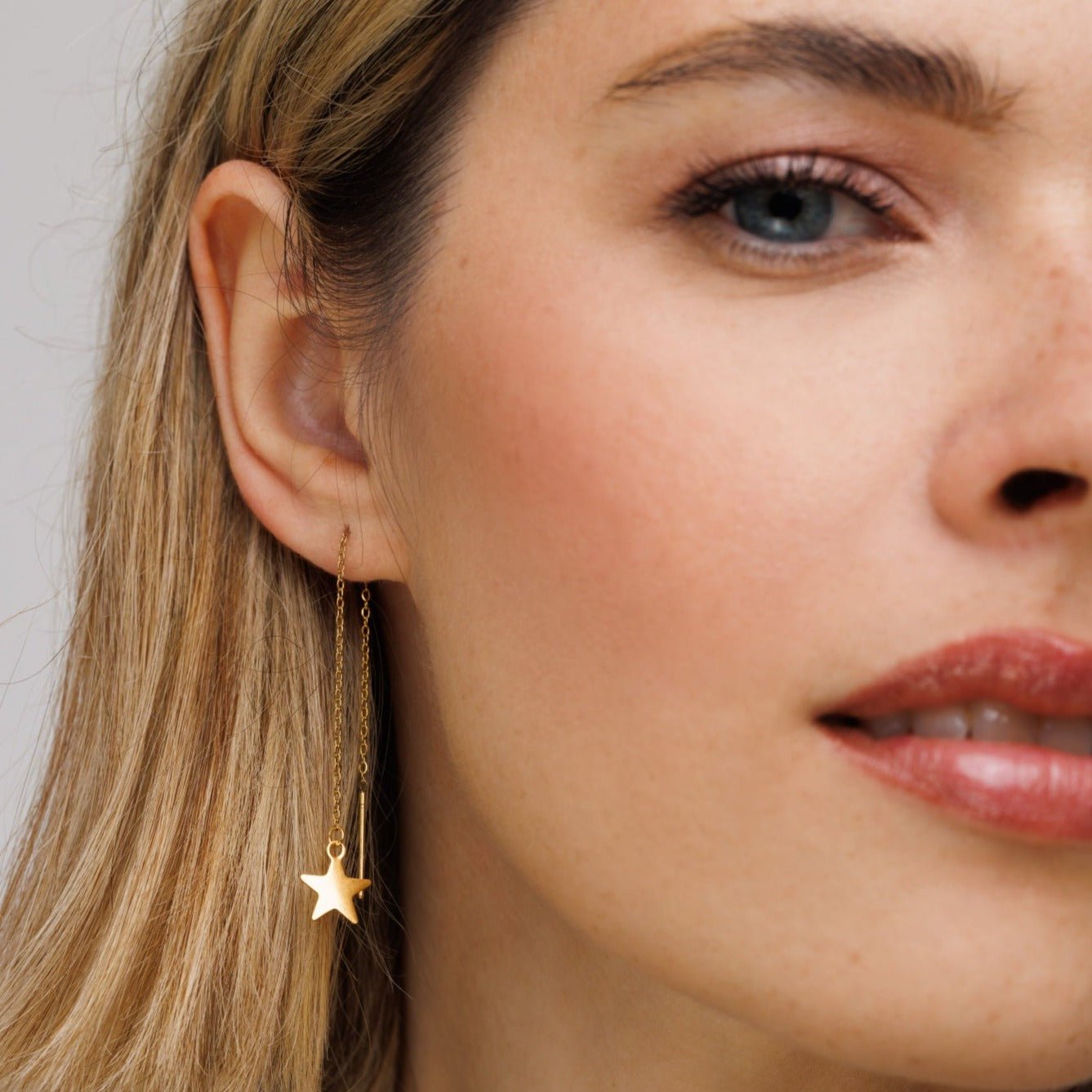 עגילי שרוך כוכב הם עגילי שרוך קלאסיים עם תליוני כוכב עדינים.